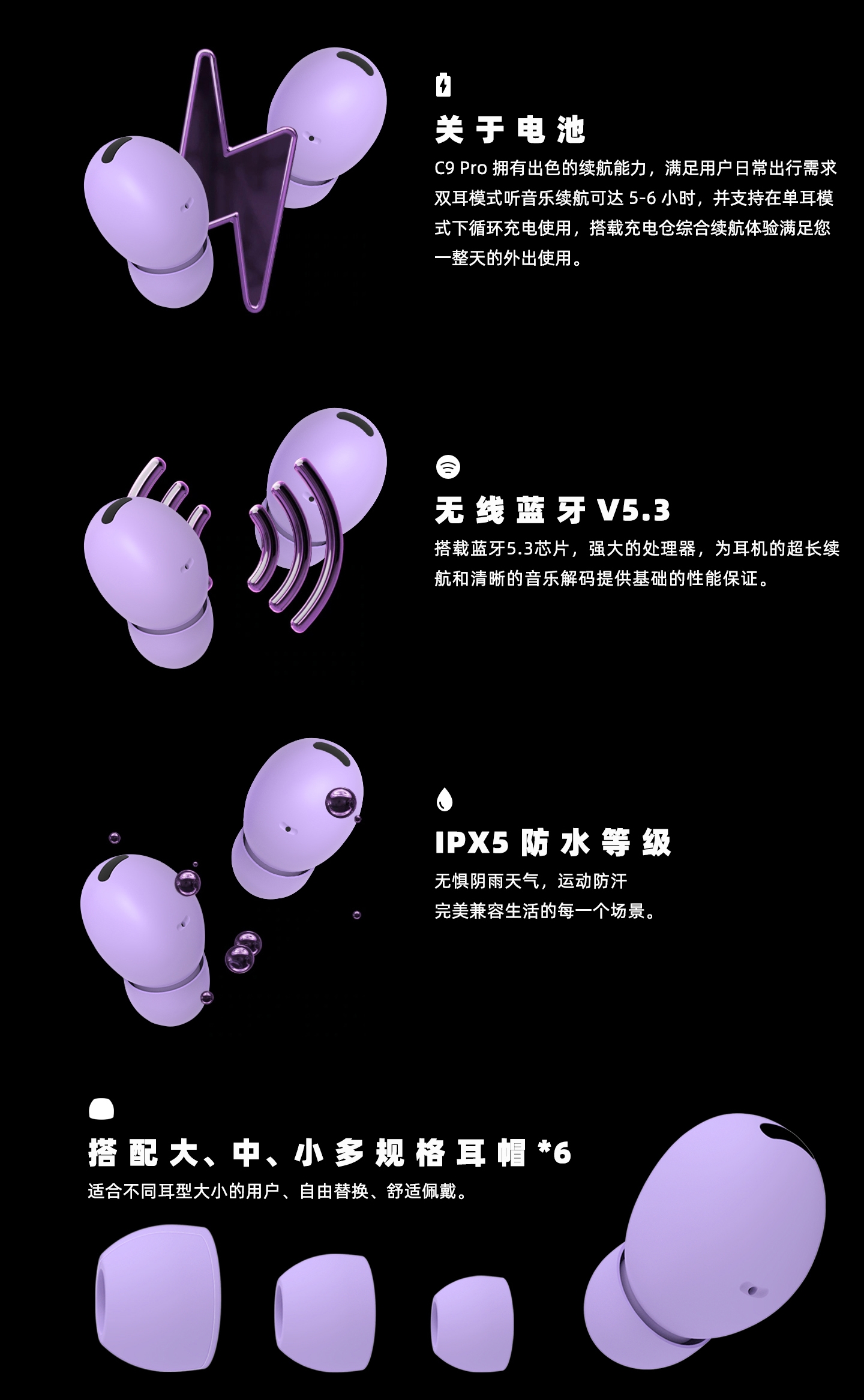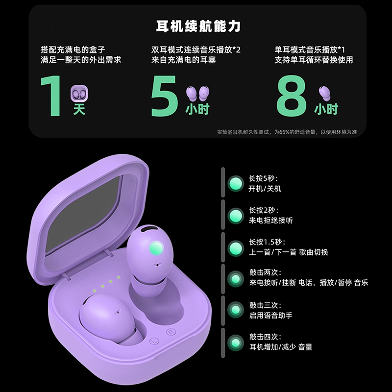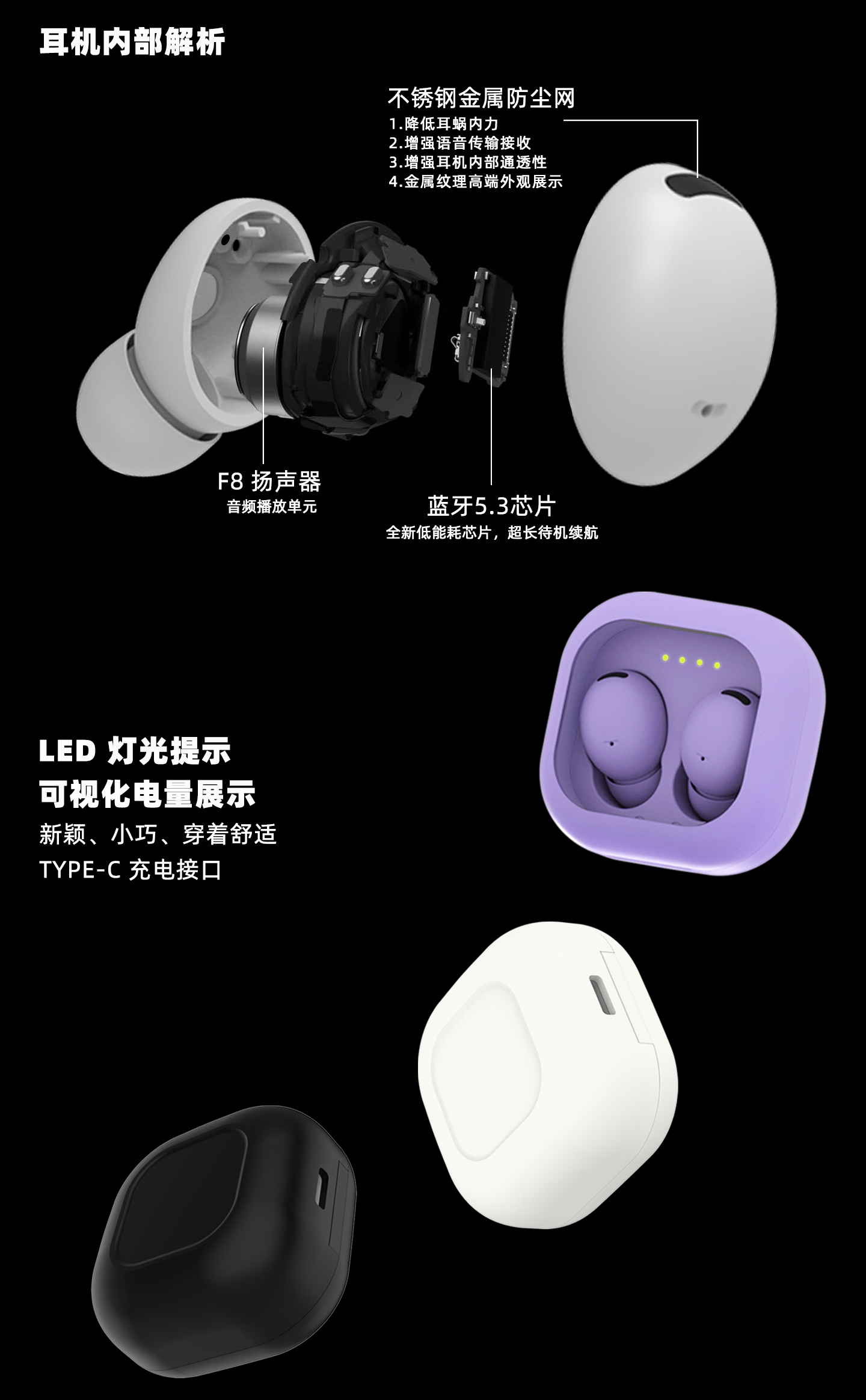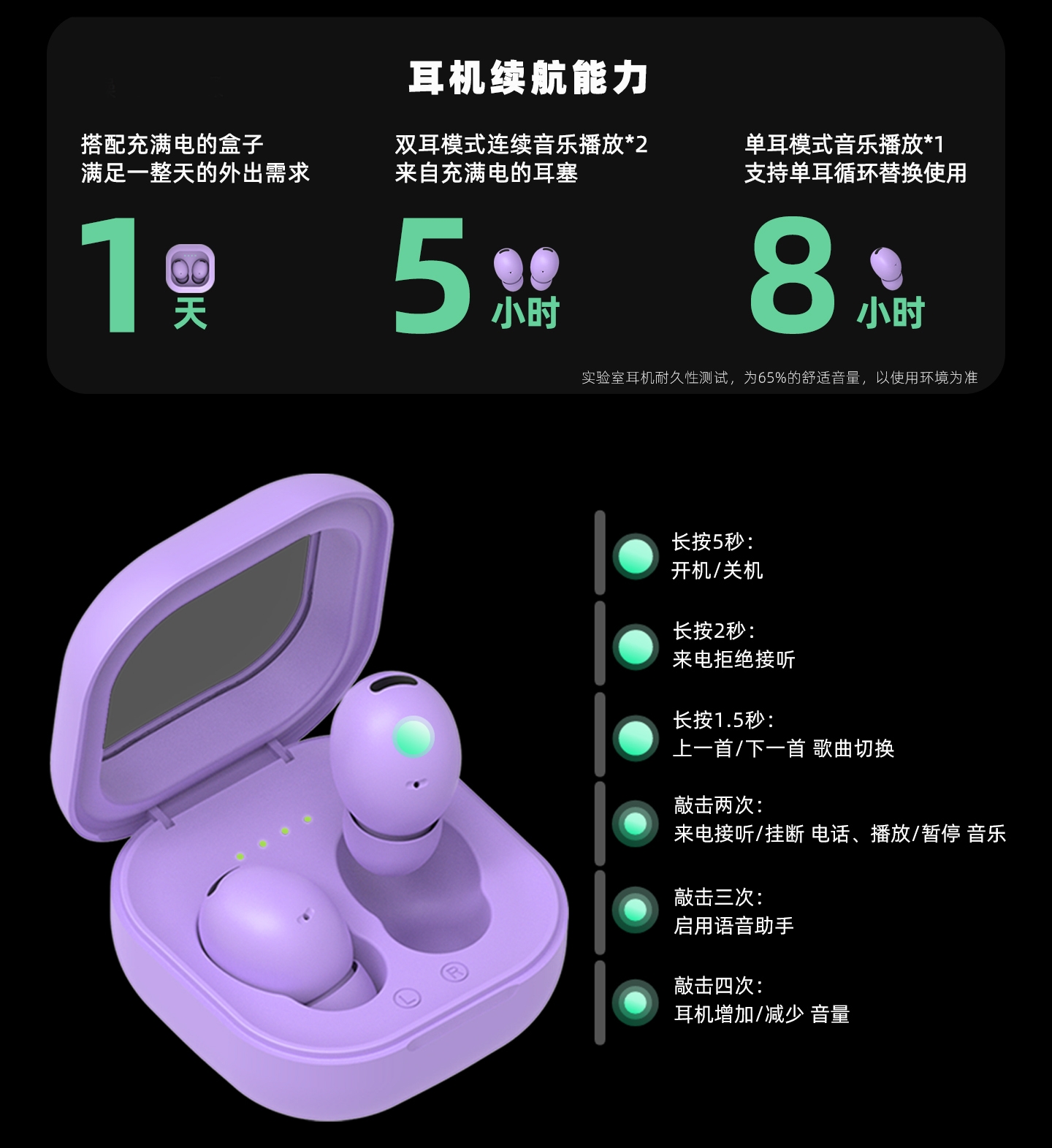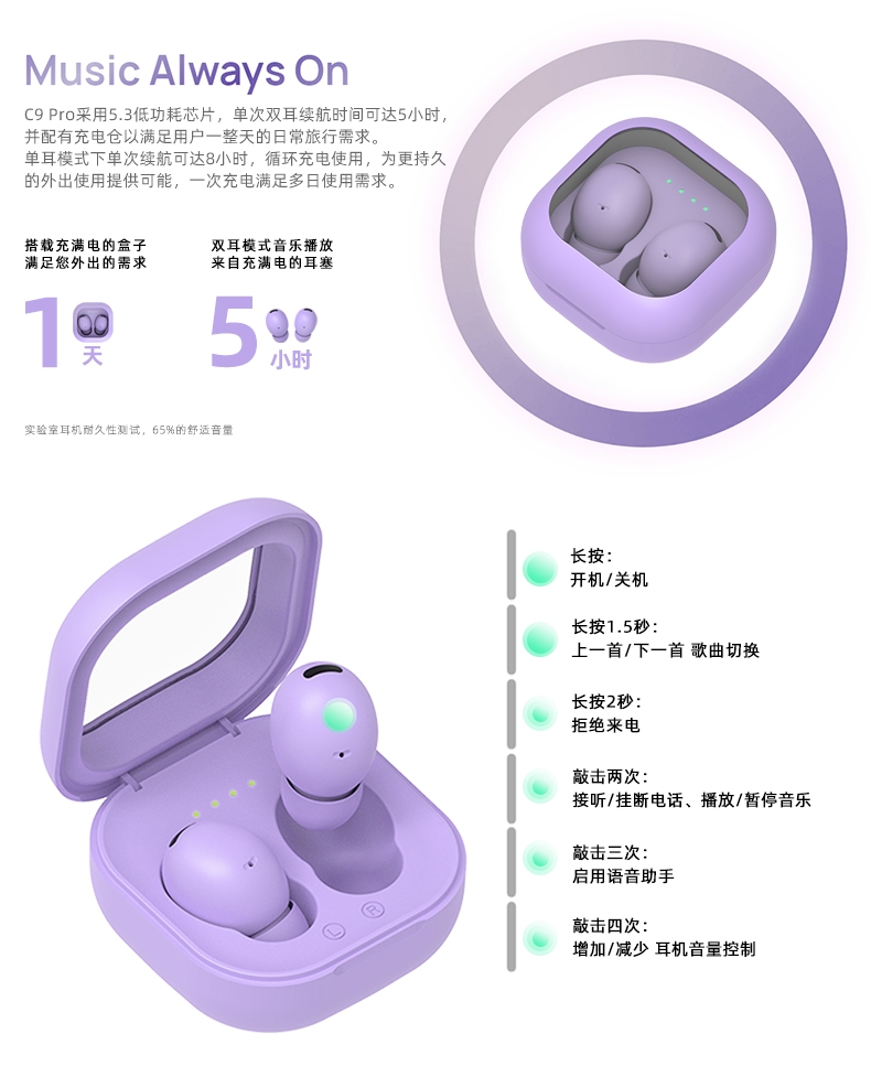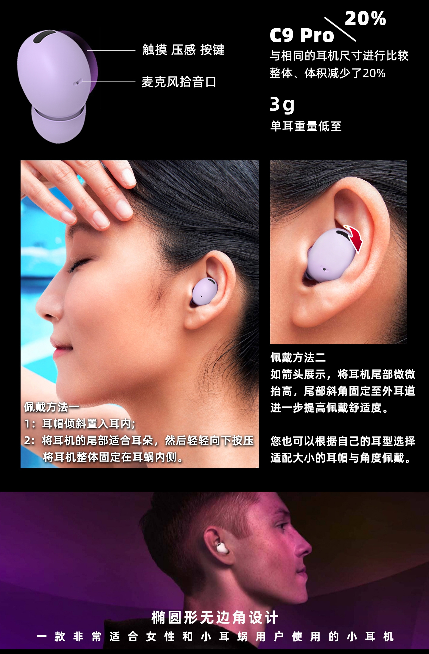 马克龙炫彩色;低延迟功率;无线双耳佩戴舒适