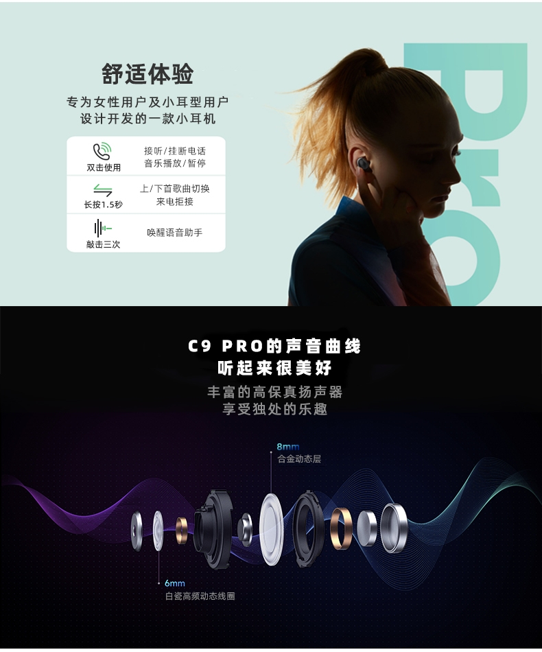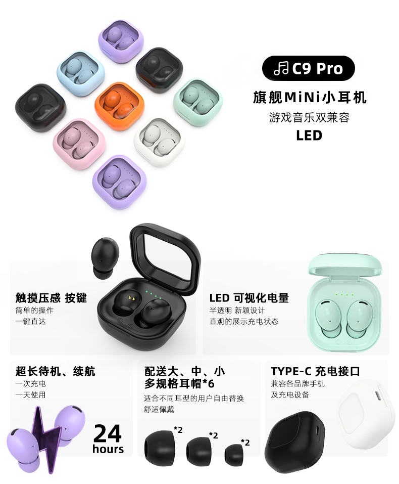 拓蓝者 无线双耳TWS触控炫彩蓝牙耳机C9Pro