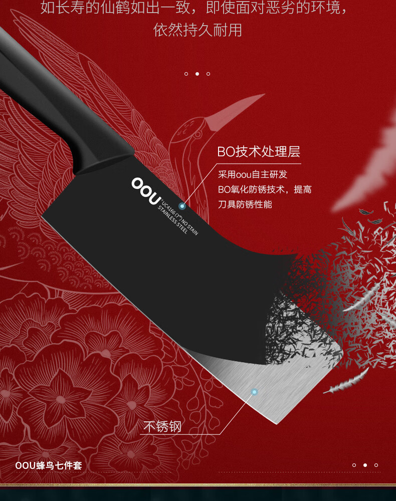 采用BO专利氧化不锈工艺抗氧化处理,不生锈,还能保;亲肤刀柄设计,有利于保持舒适手感;精选优质钢材,内部材质组织结构紧密,韧性与锋利兼顾