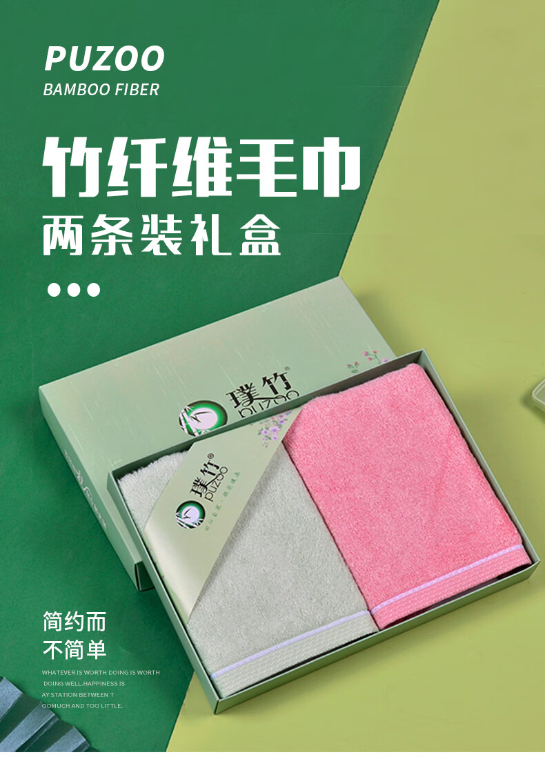 璞竹 竹纤维毛巾两条礼盒装PZX-239