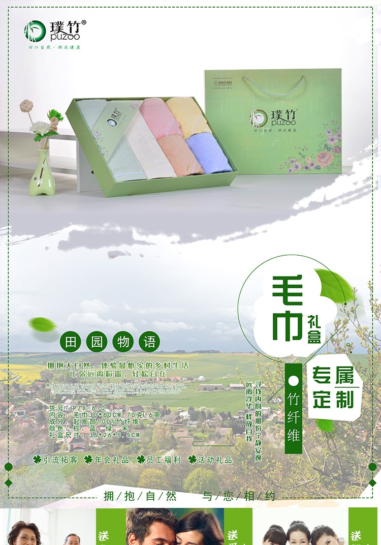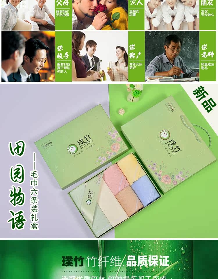 璞竹 田园物语纤维毛巾6条装PZX-610