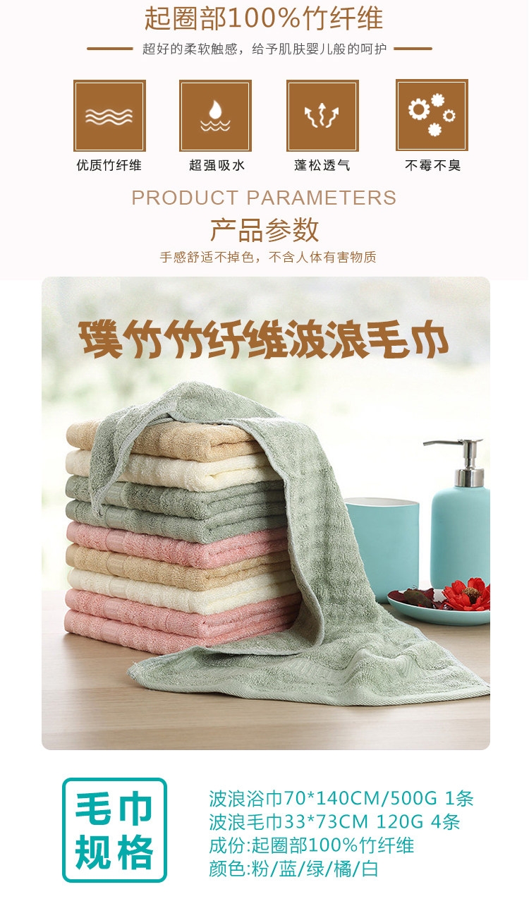 配置:波浪浴巾70*140cm/500g 1条 波浪毛巾33*73cm 120g 4条