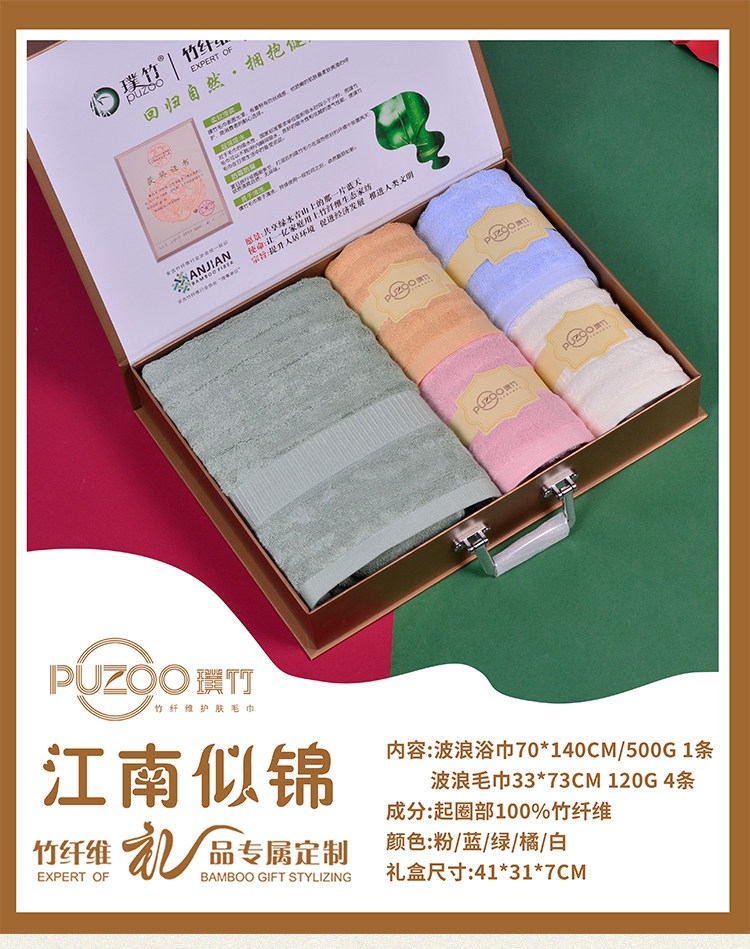璞竹 江南似锦毛巾浴巾5条装礼盒PZX-578