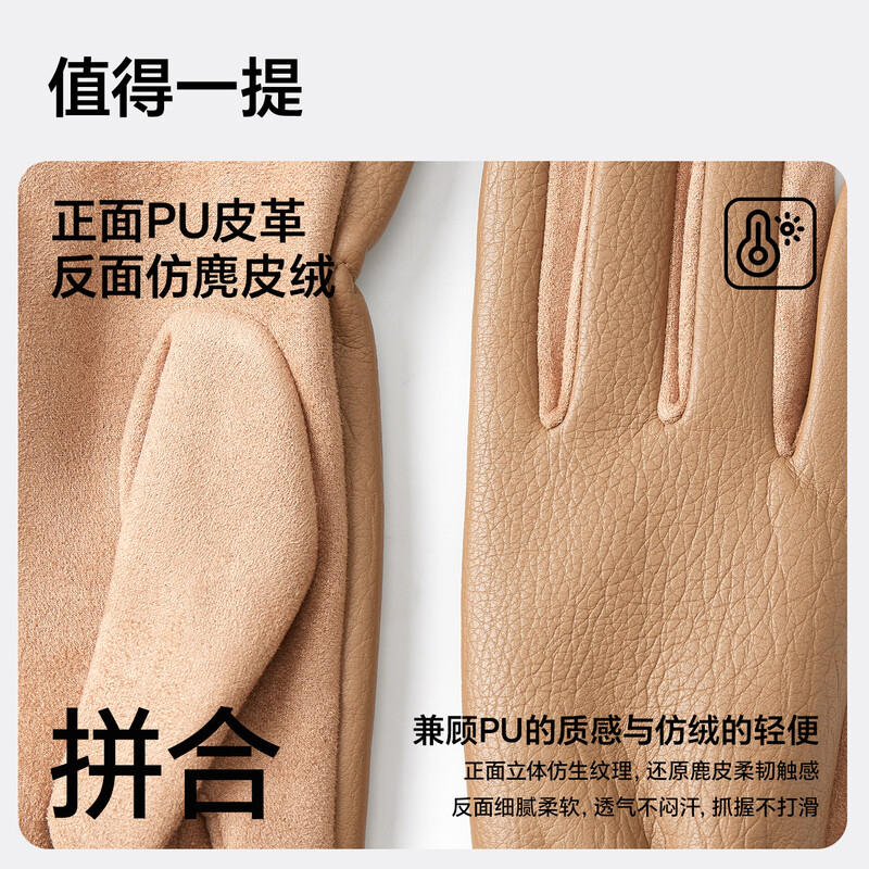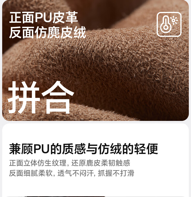 仿鹿皮纹理;兼顾PU的质感与仿绒的轻便;可触屏设计