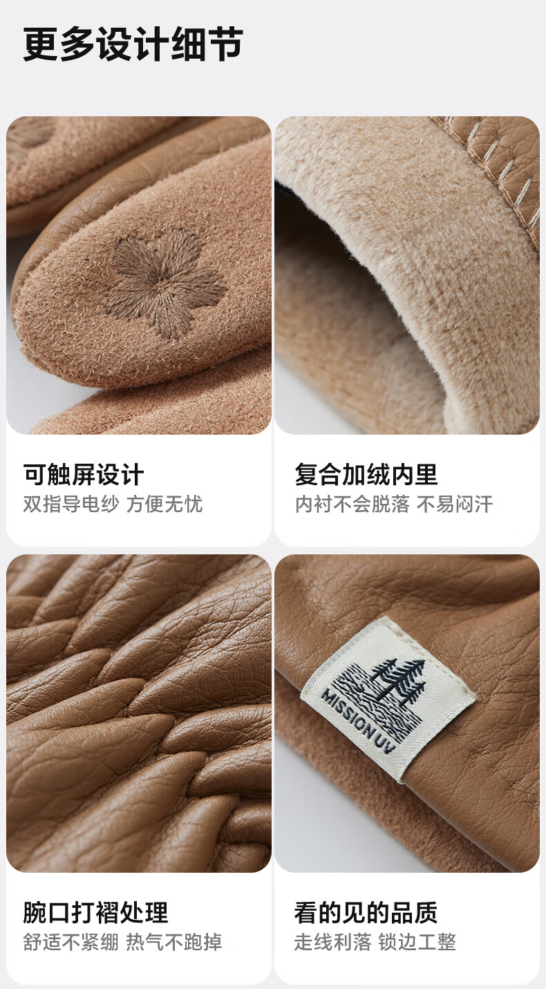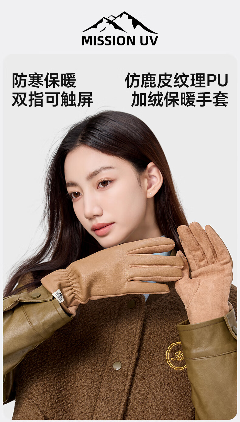 MISSION UV 保暖皮手套女冬加绒户外骑行手套MUS096