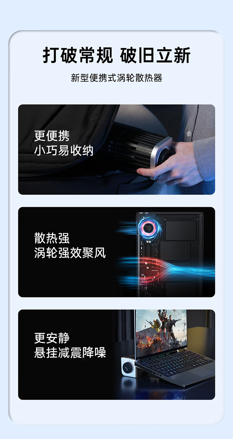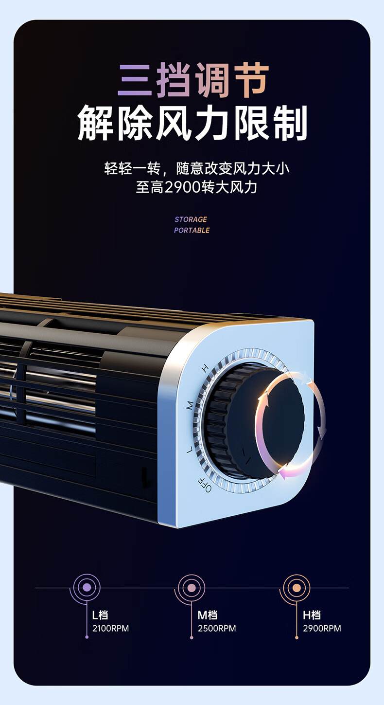 便携收纳;搭载高速双涡轮电机;2600转风量