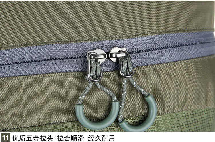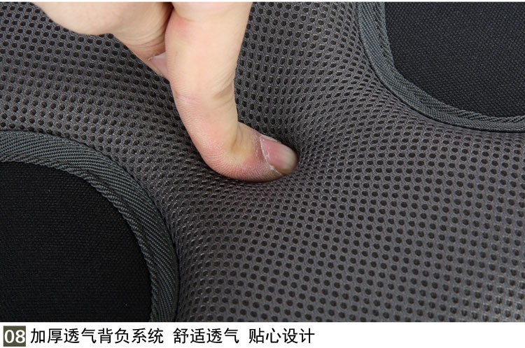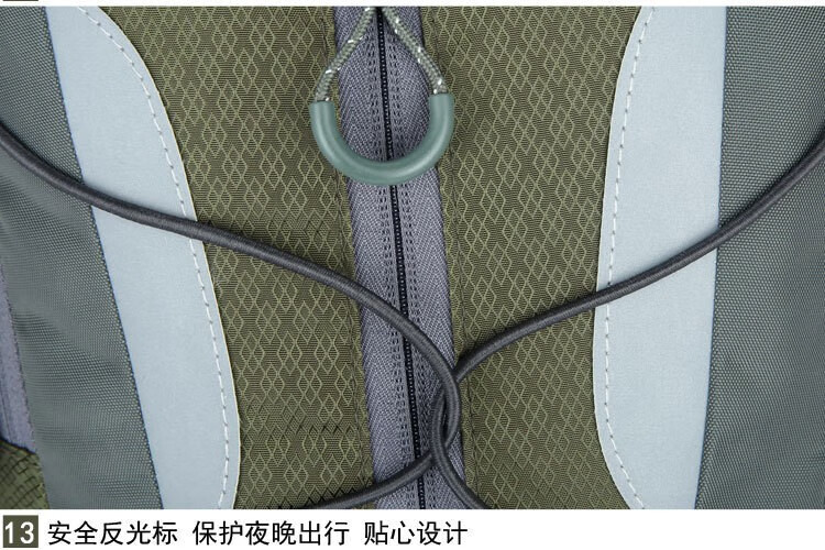 多功能大容量袋;防划、防泼水、易清洁、反光标设计;透气腰垫和背负系统、防滑拉头