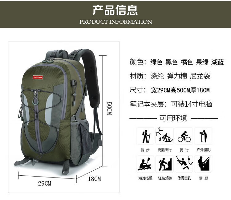 斯维格尔 登山包男骑行背包户外背包旅行包SWE-CB3012