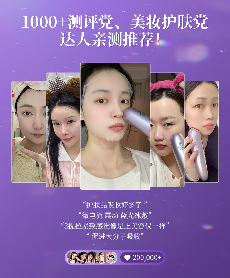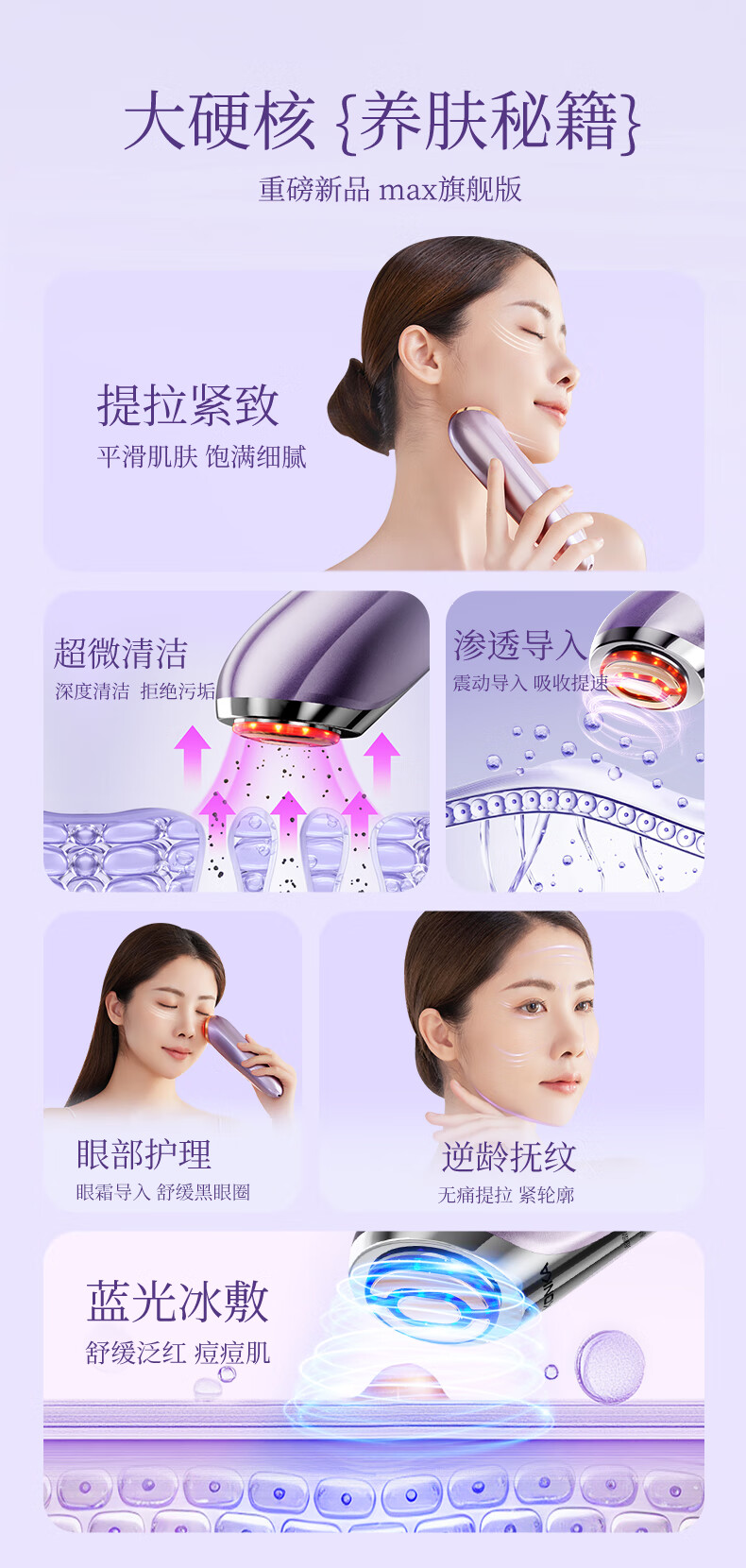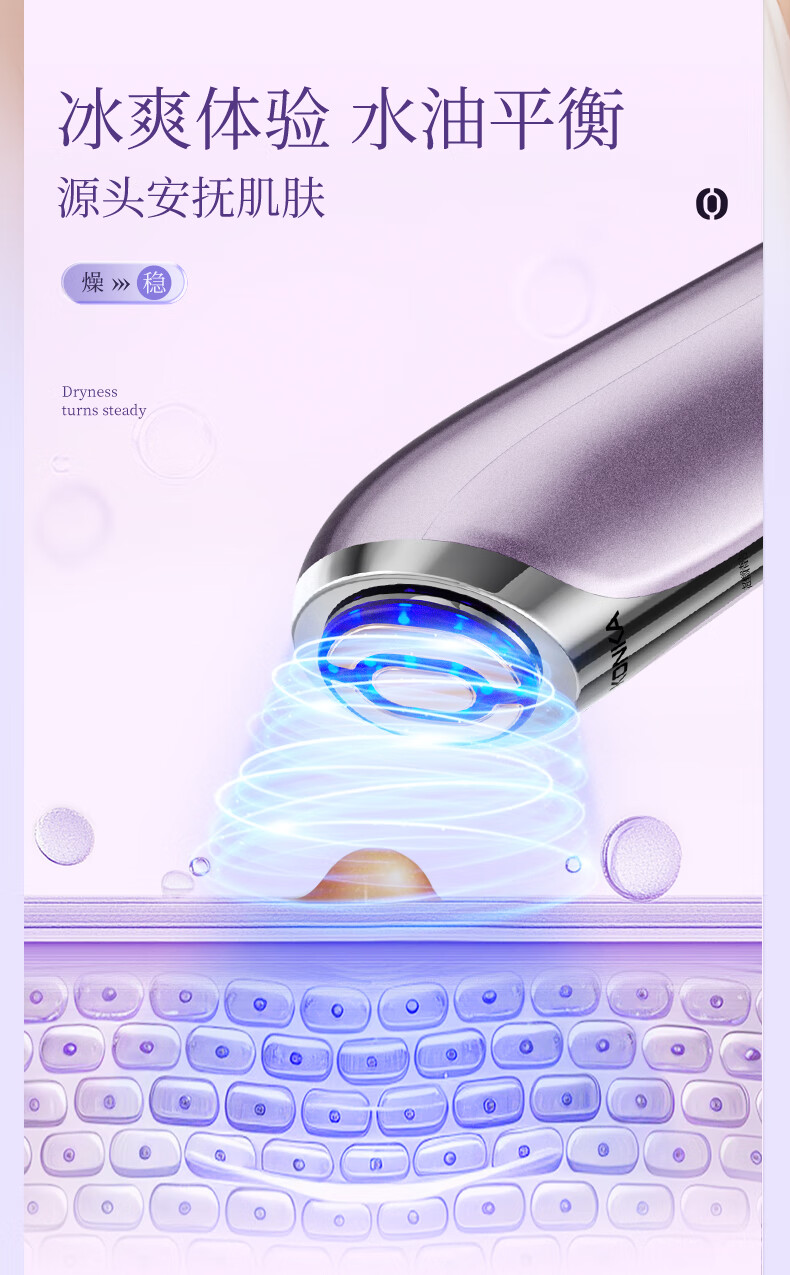 超微清洁 渗透导入;冰爽体验 水油平衡;蓝光+冰敷 舒缓肌肤