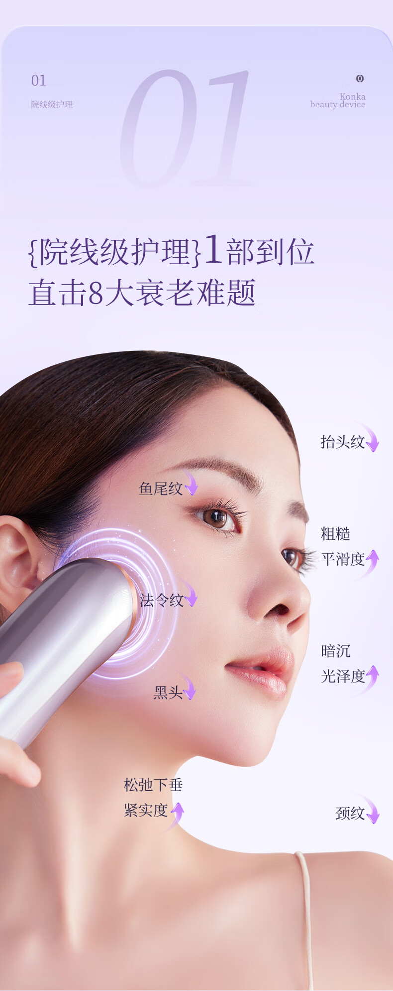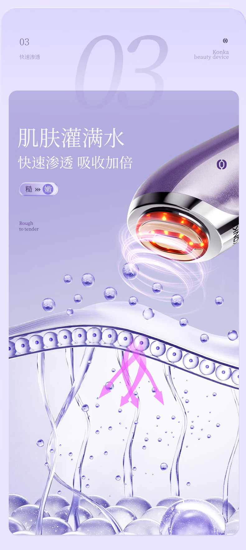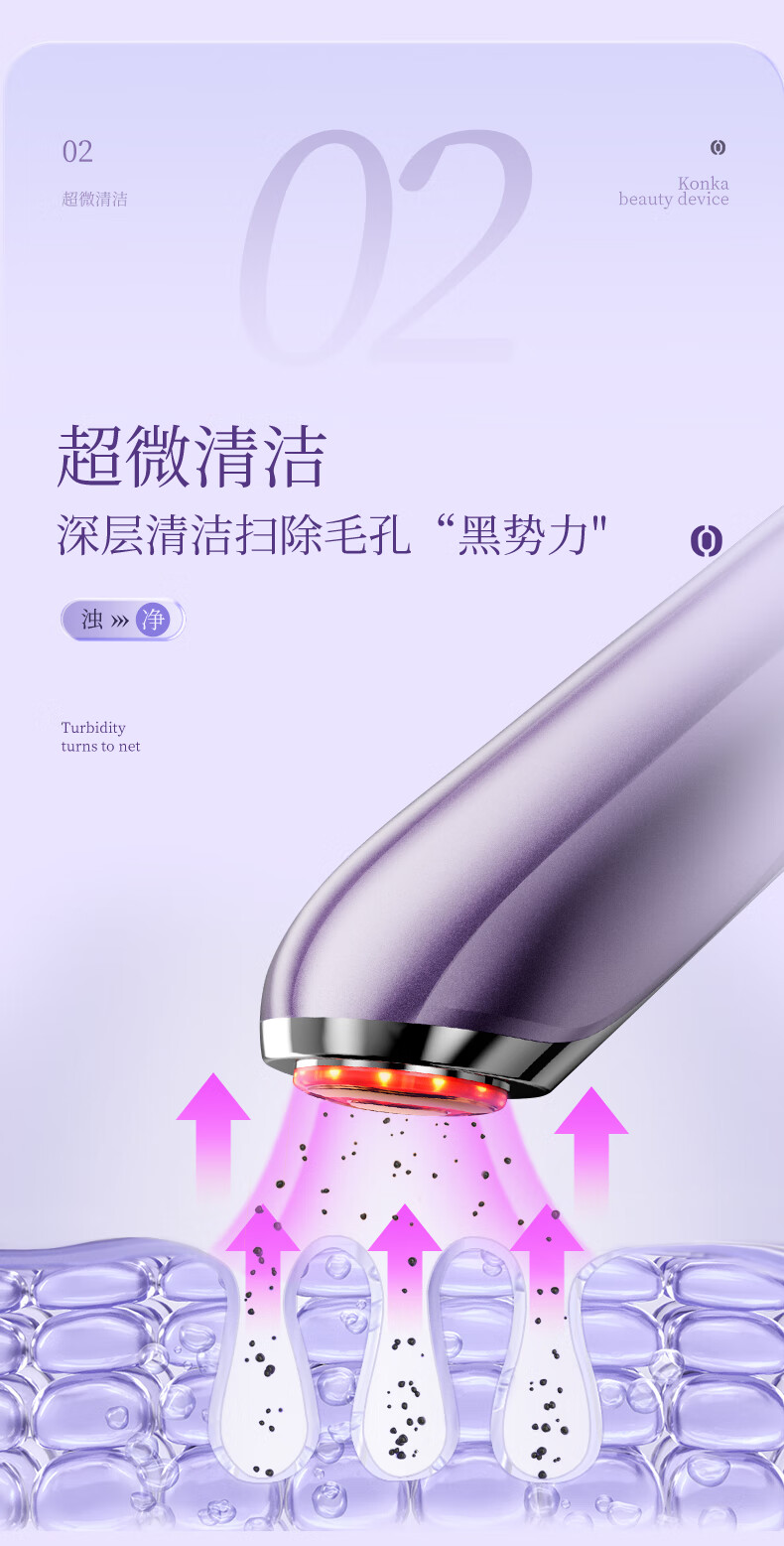 超微清洁 渗透导入;冰爽体验 水油平衡;蓝光+冰敷 舒缓肌肤