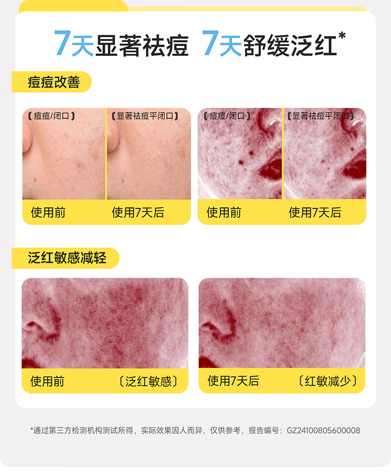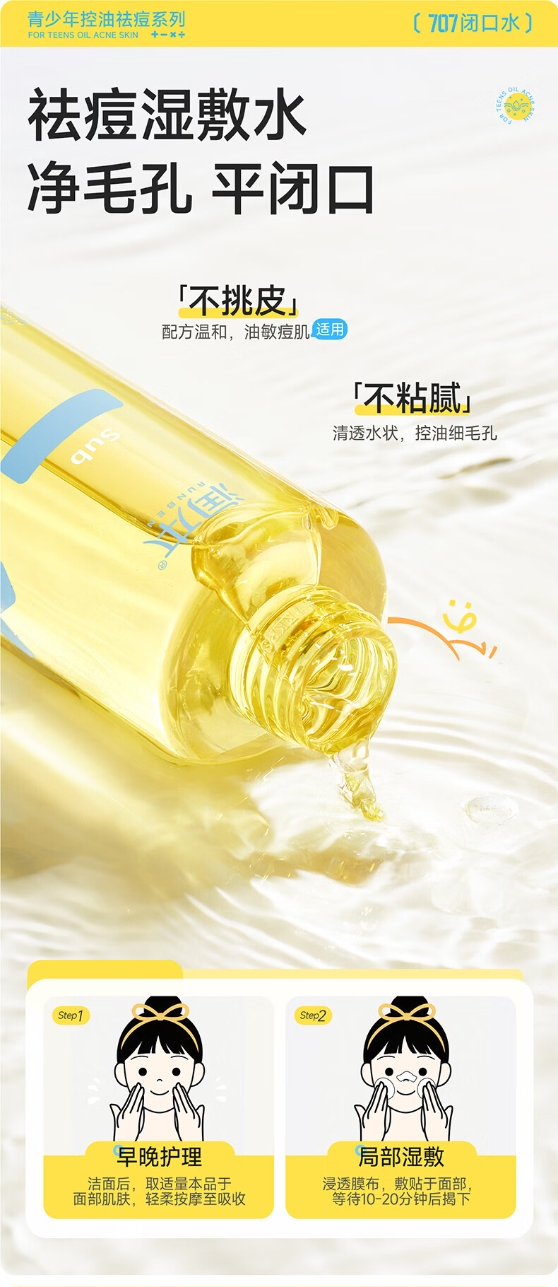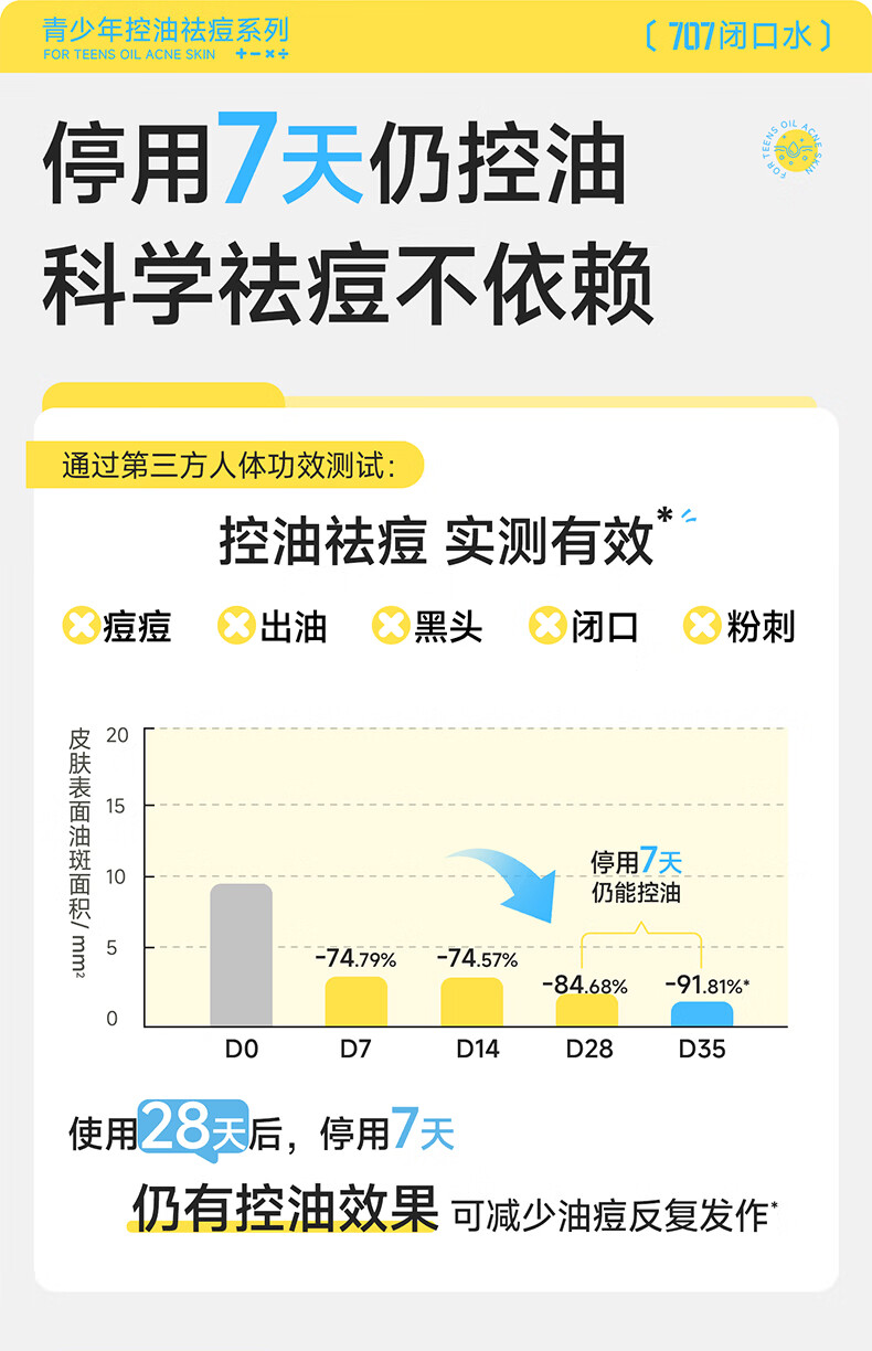 维持肌肤水油平衡,疏通毛孔;防止毛孔堵塞,调节痘痘反复;平滑粗糙油痘肌肤