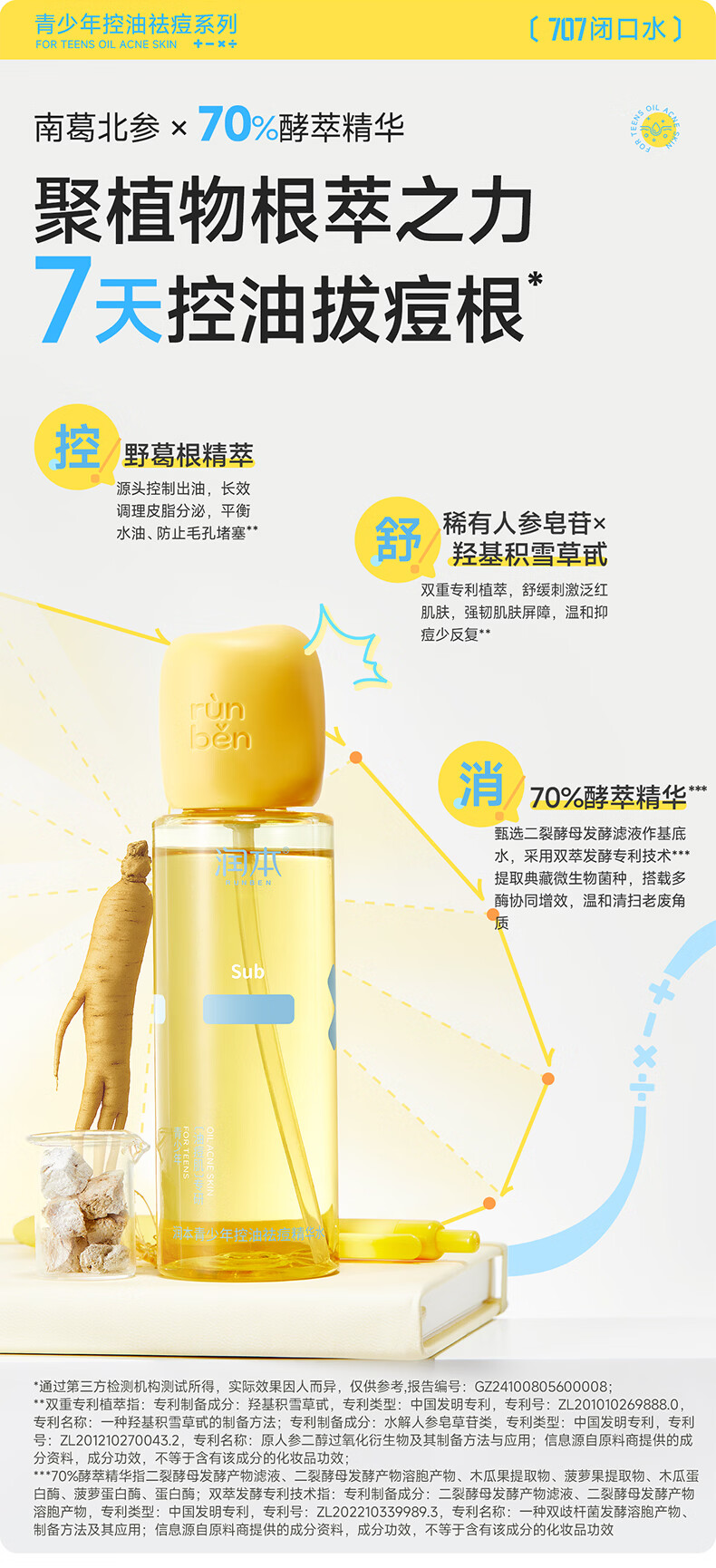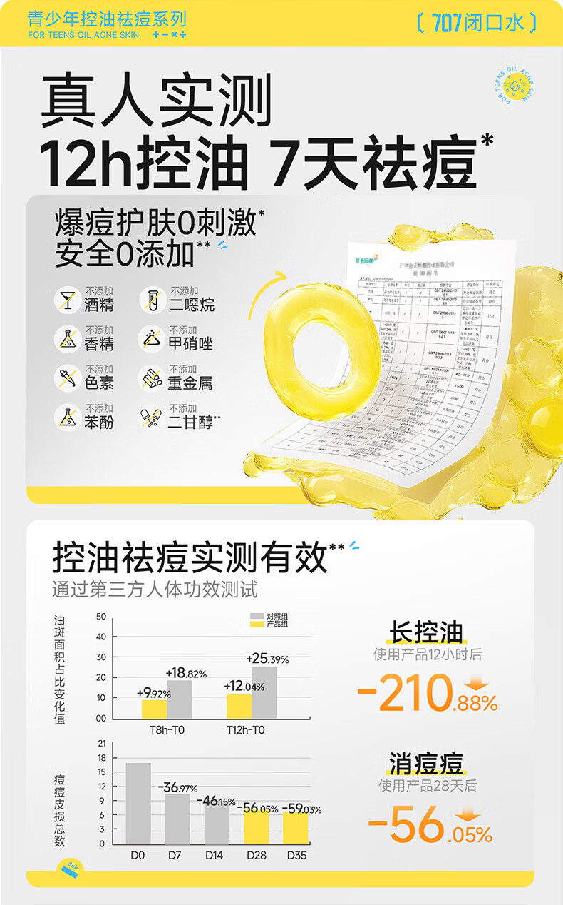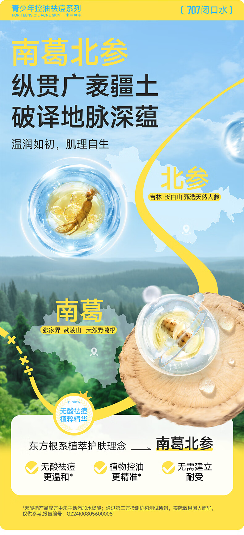 维持肌肤水油平衡,疏通毛孔;防止毛孔堵塞,调节痘痘反复;平滑粗糙油痘肌肤