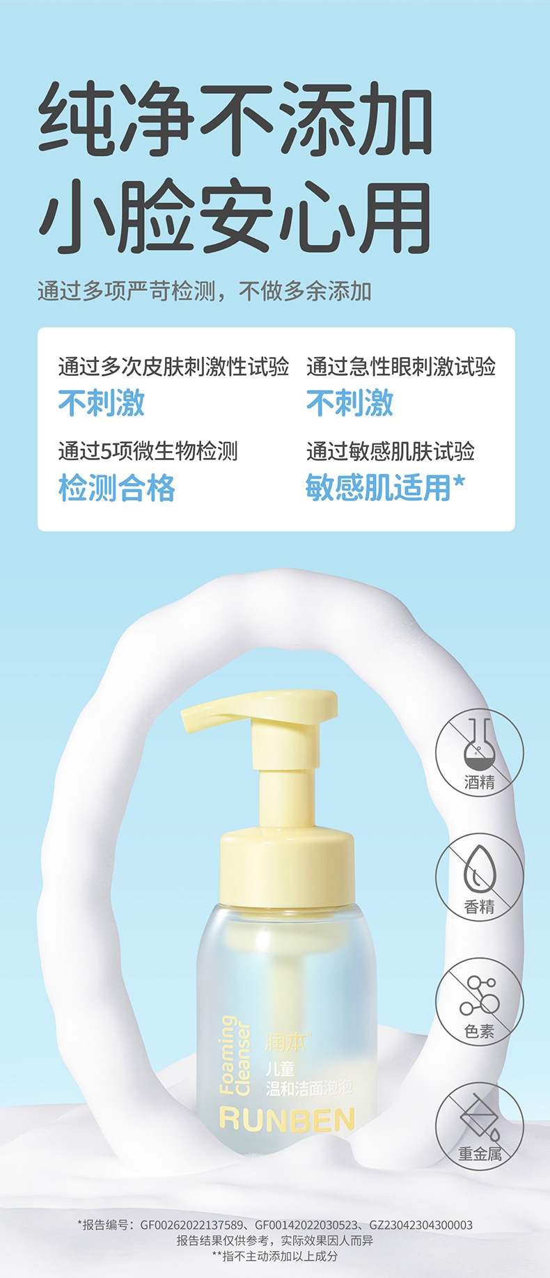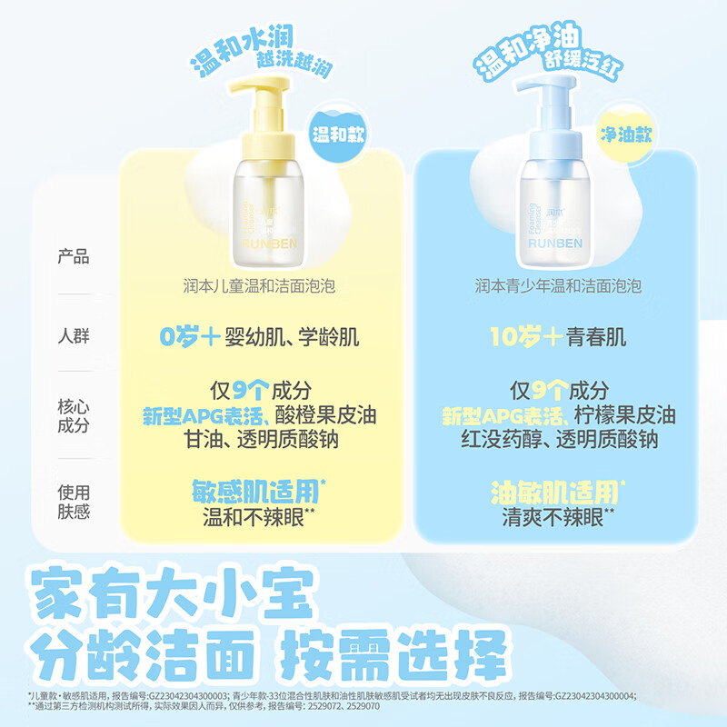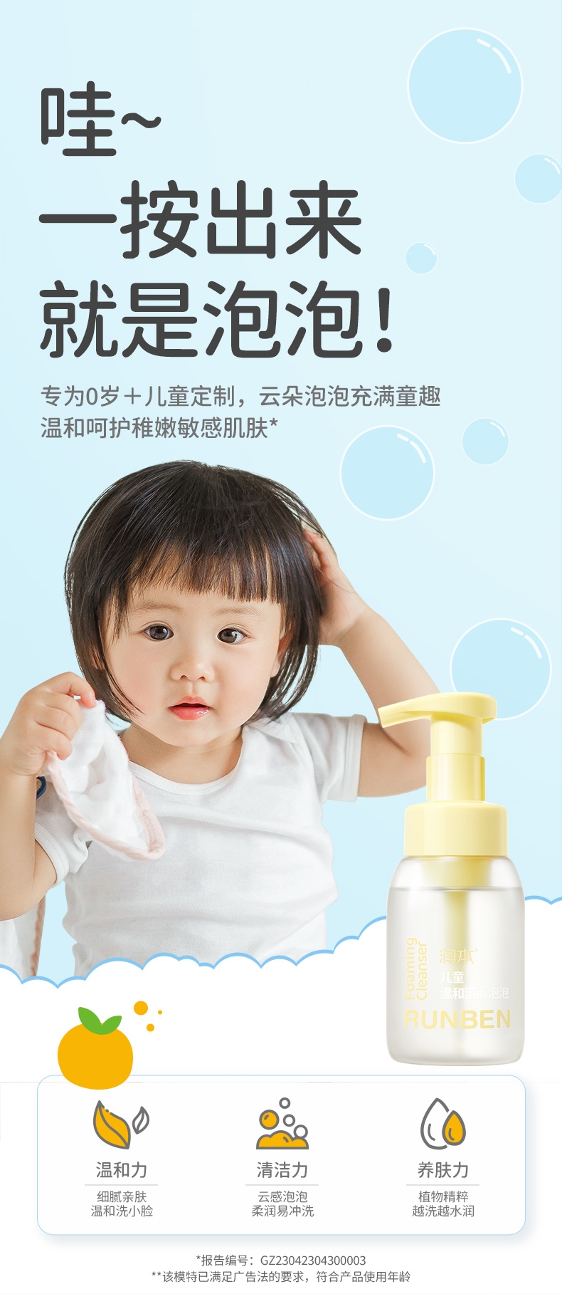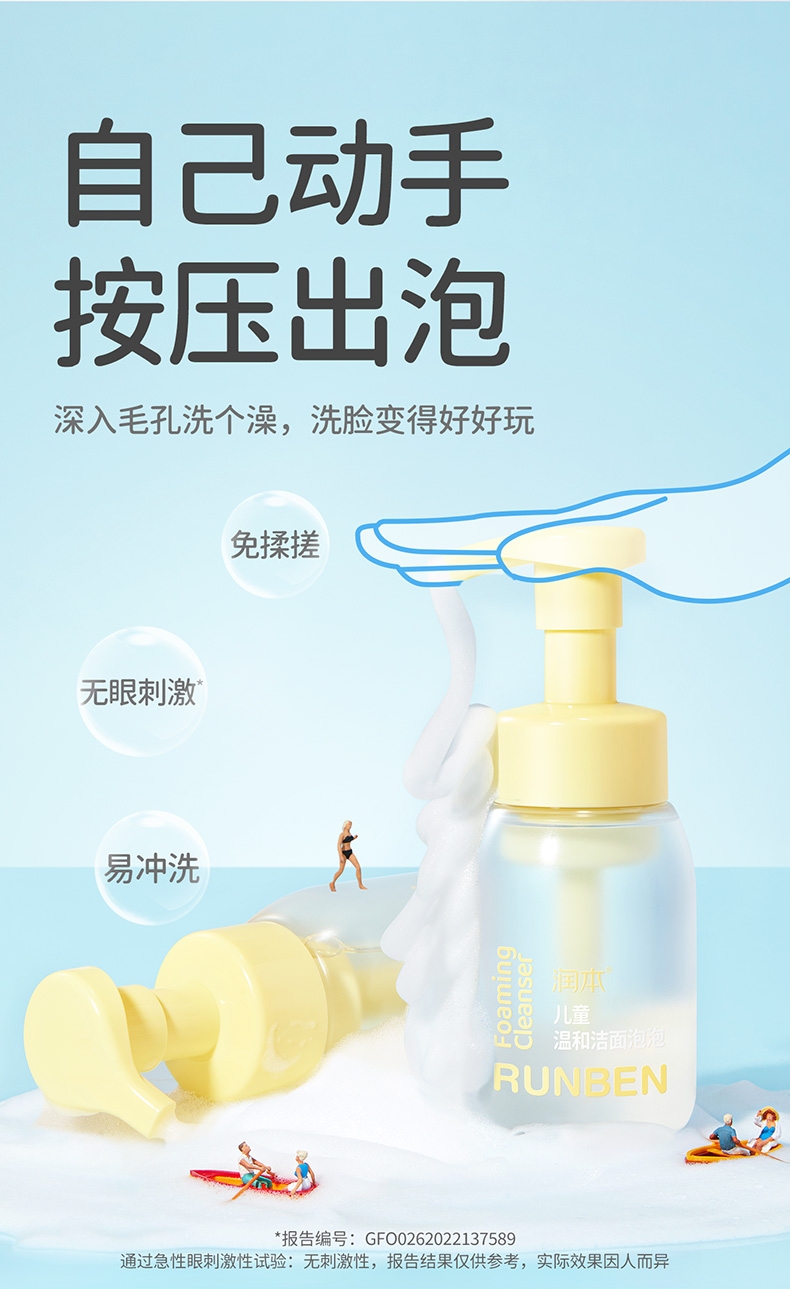 专为儿童肌肤研制;洁面同时倾注水润保护力;肌肤柔润不刺激