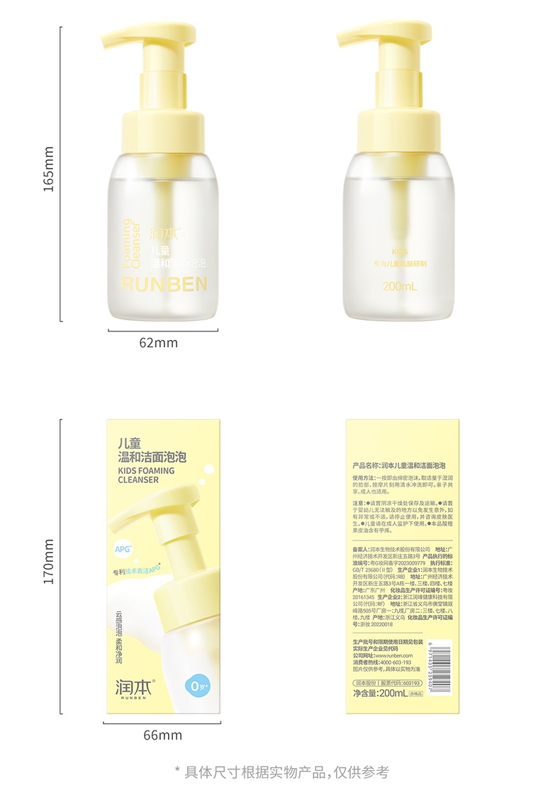 润本 儿童温和洁面泡泡200ml