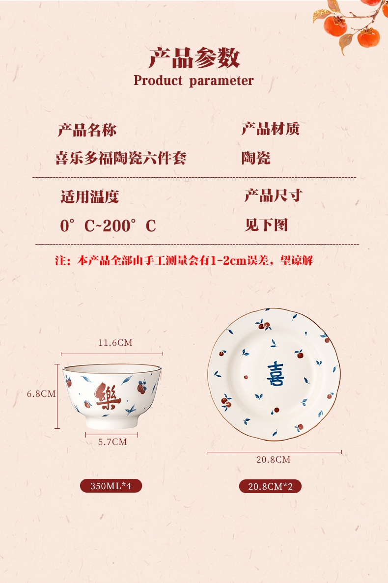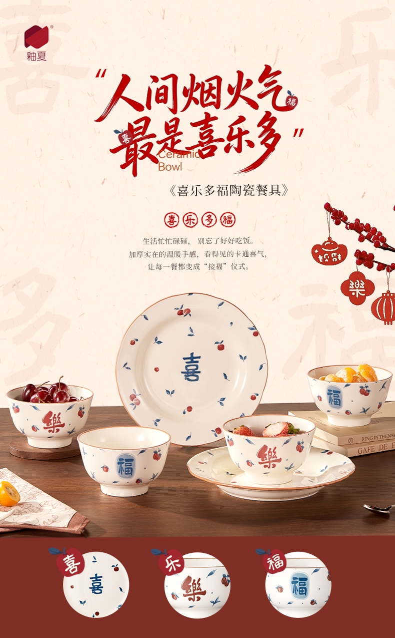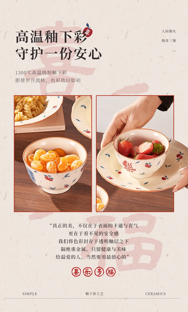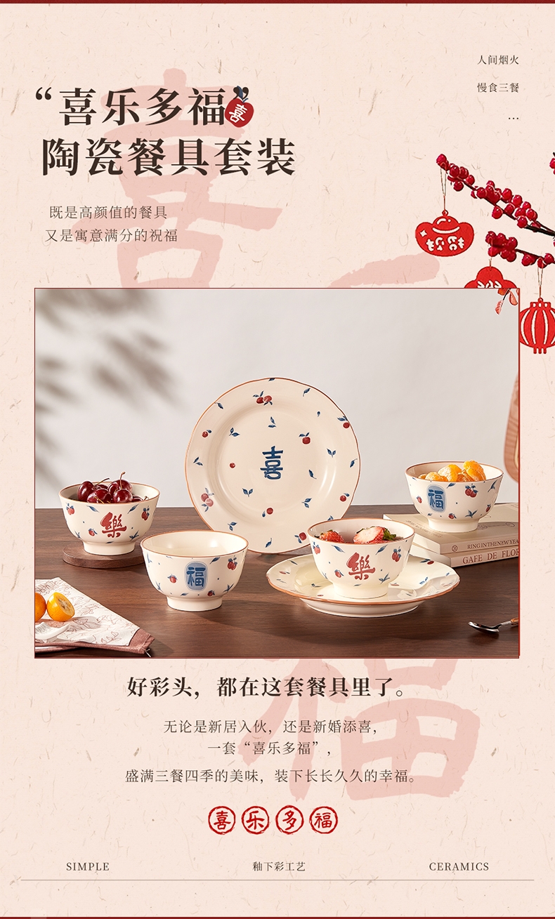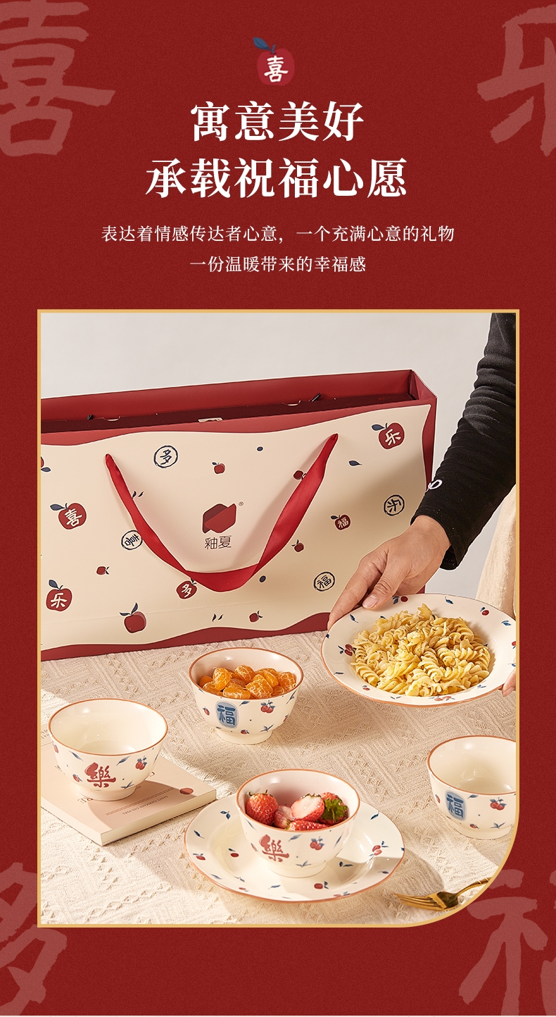 釉夏 喜乐多福陶瓷餐具六件套Y-XLDF/L6