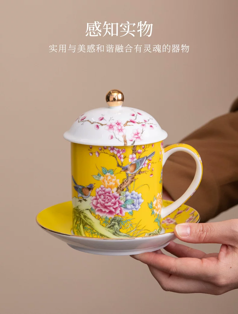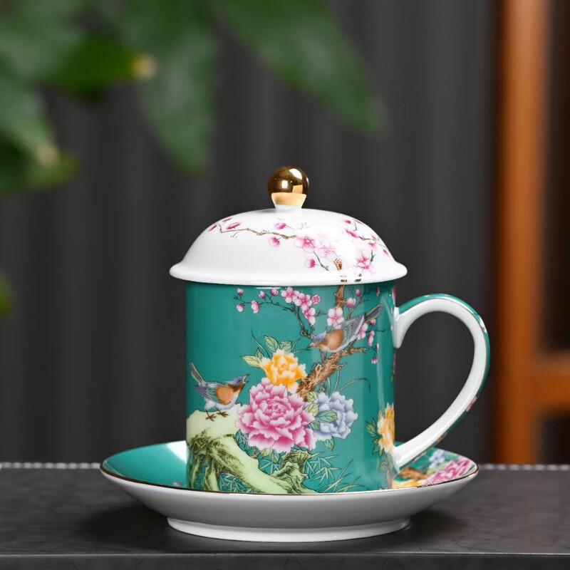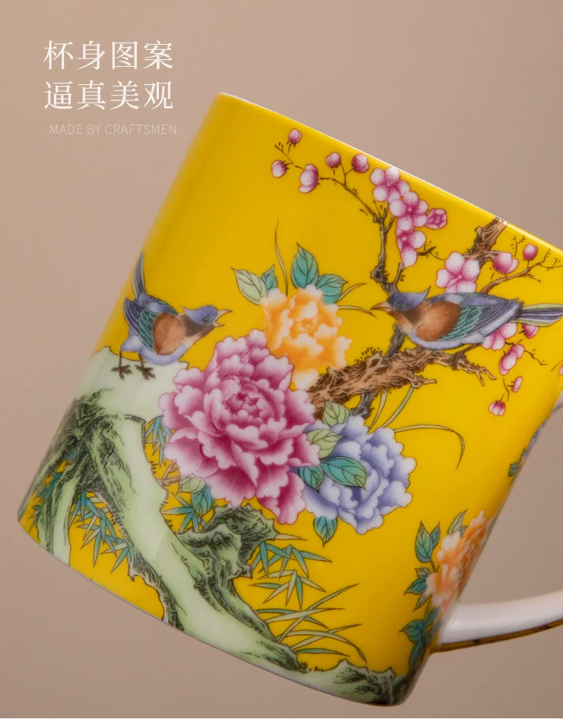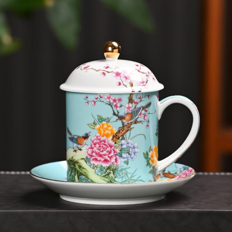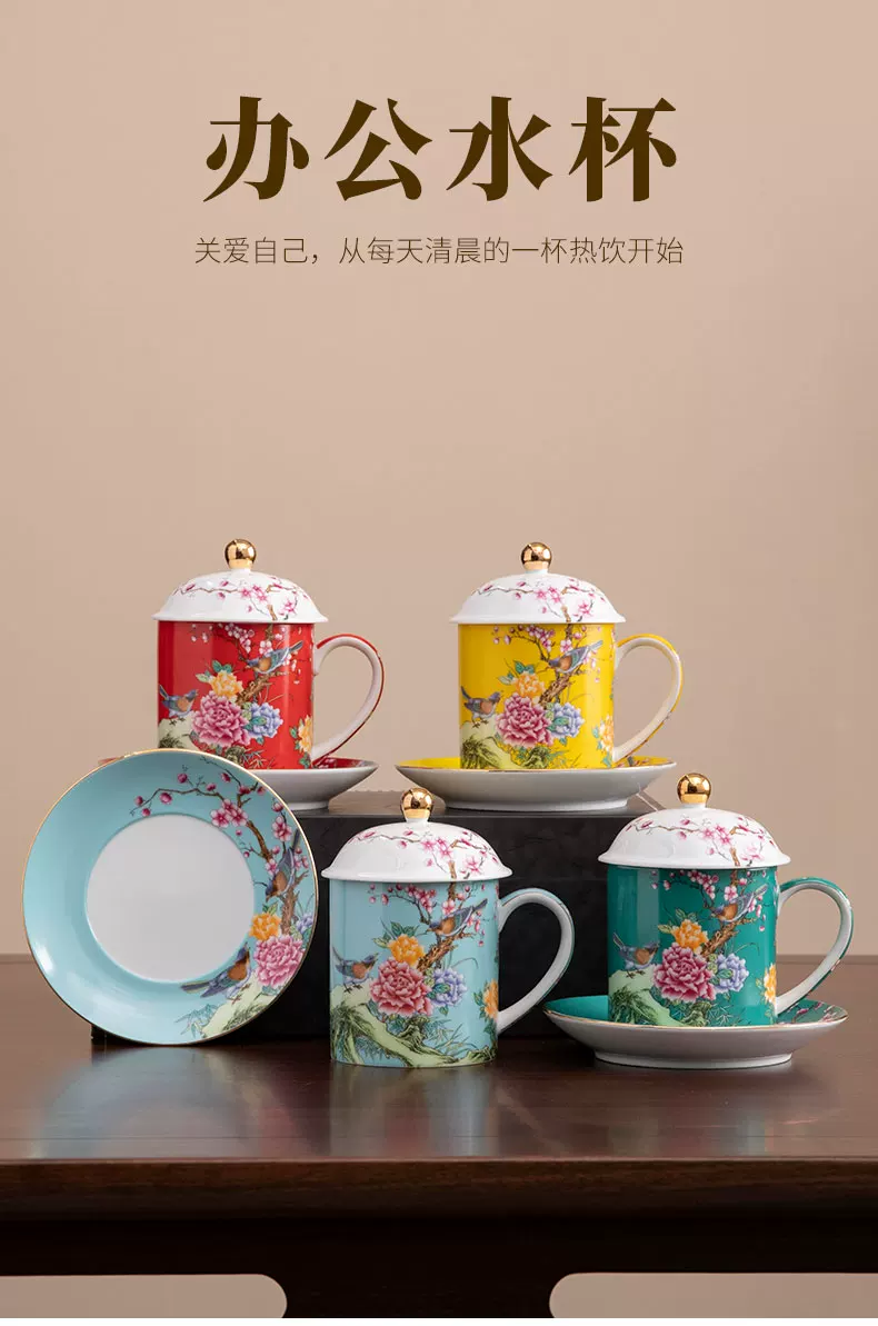 瓷语花香 喜上眉梢珐琅彩办公杯906
