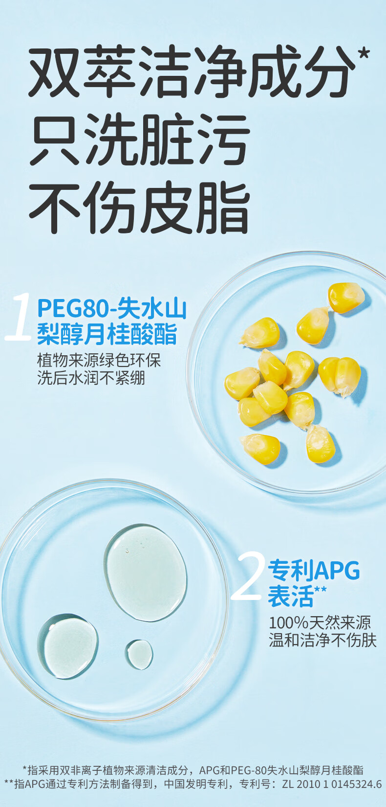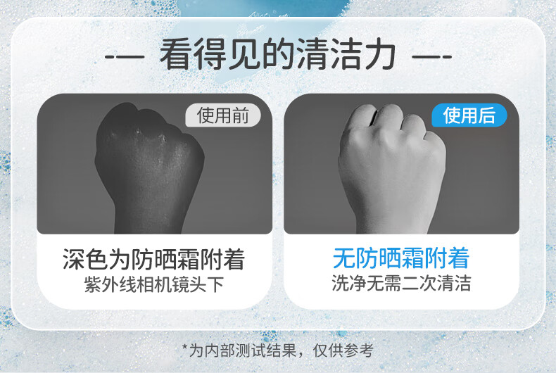 双重植物来源清洁成分;温和洗净脏污和防晒;一按出泡易冲洗,洗后水润不紧绷