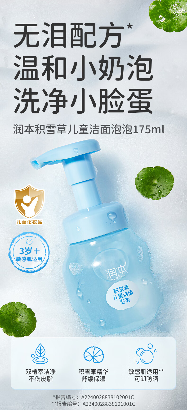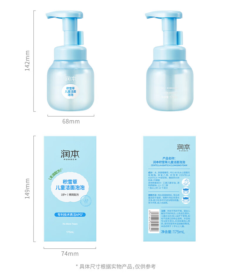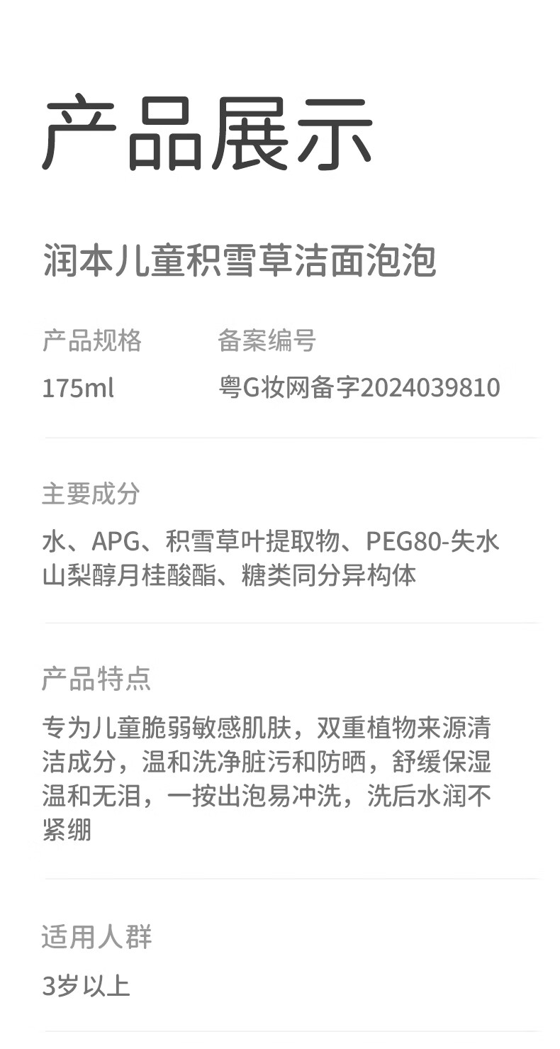 润本 积雪草儿童洁面泡泡175ml