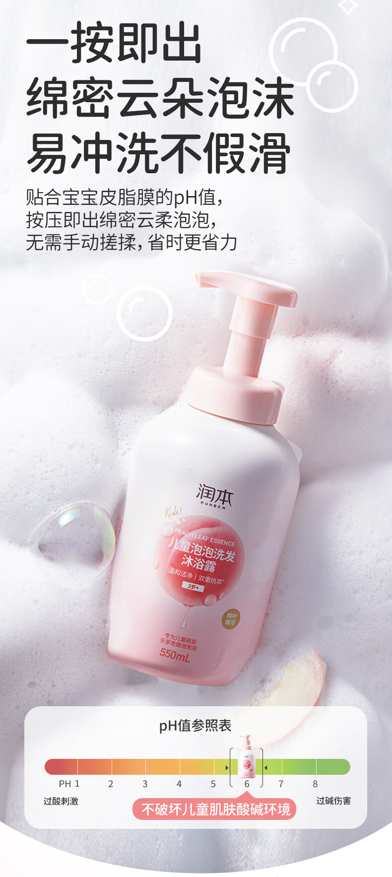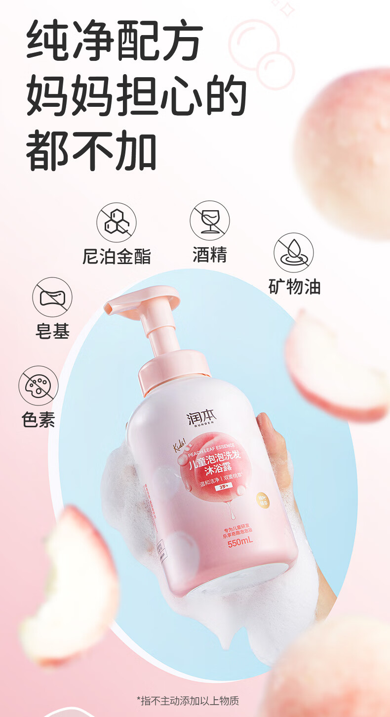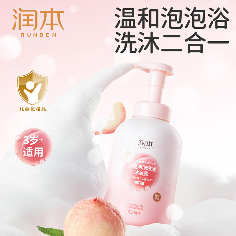 润本 儿童泡泡洗发沐浴露二合一550ml