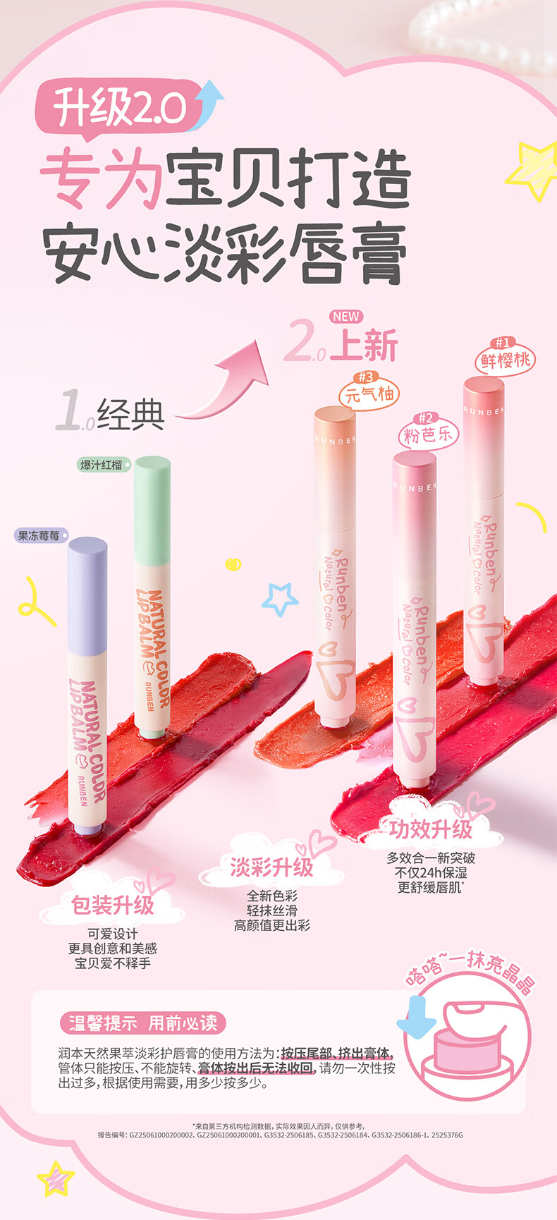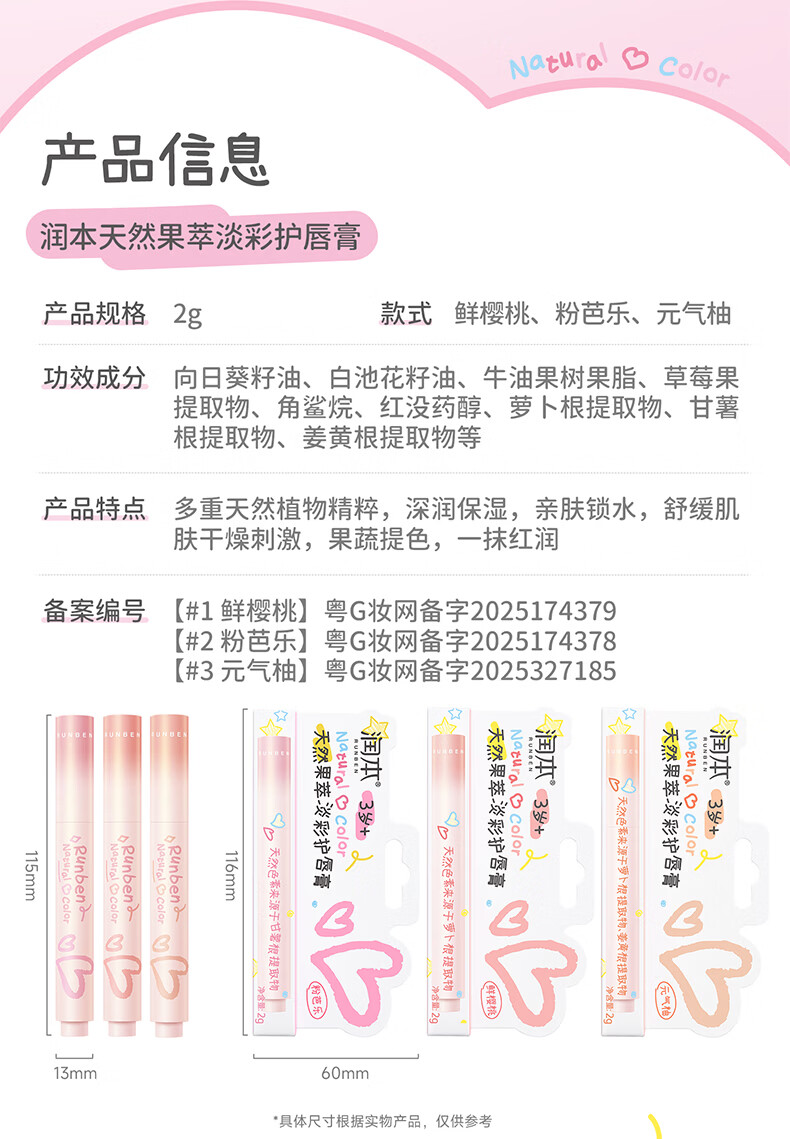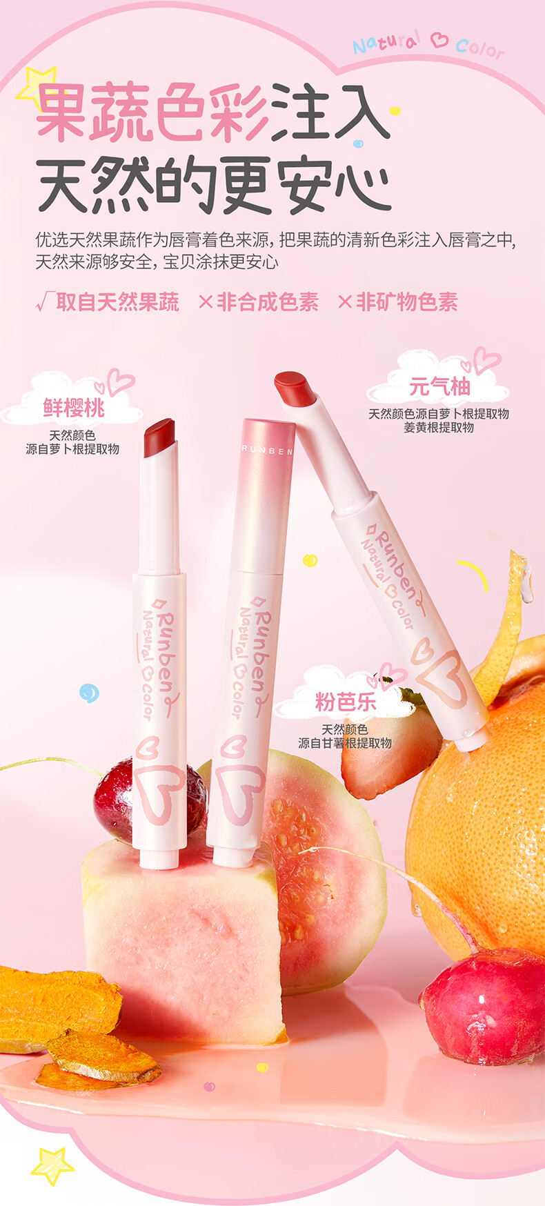 润本 天然果萃淡彩护唇膏鲜樱桃2g