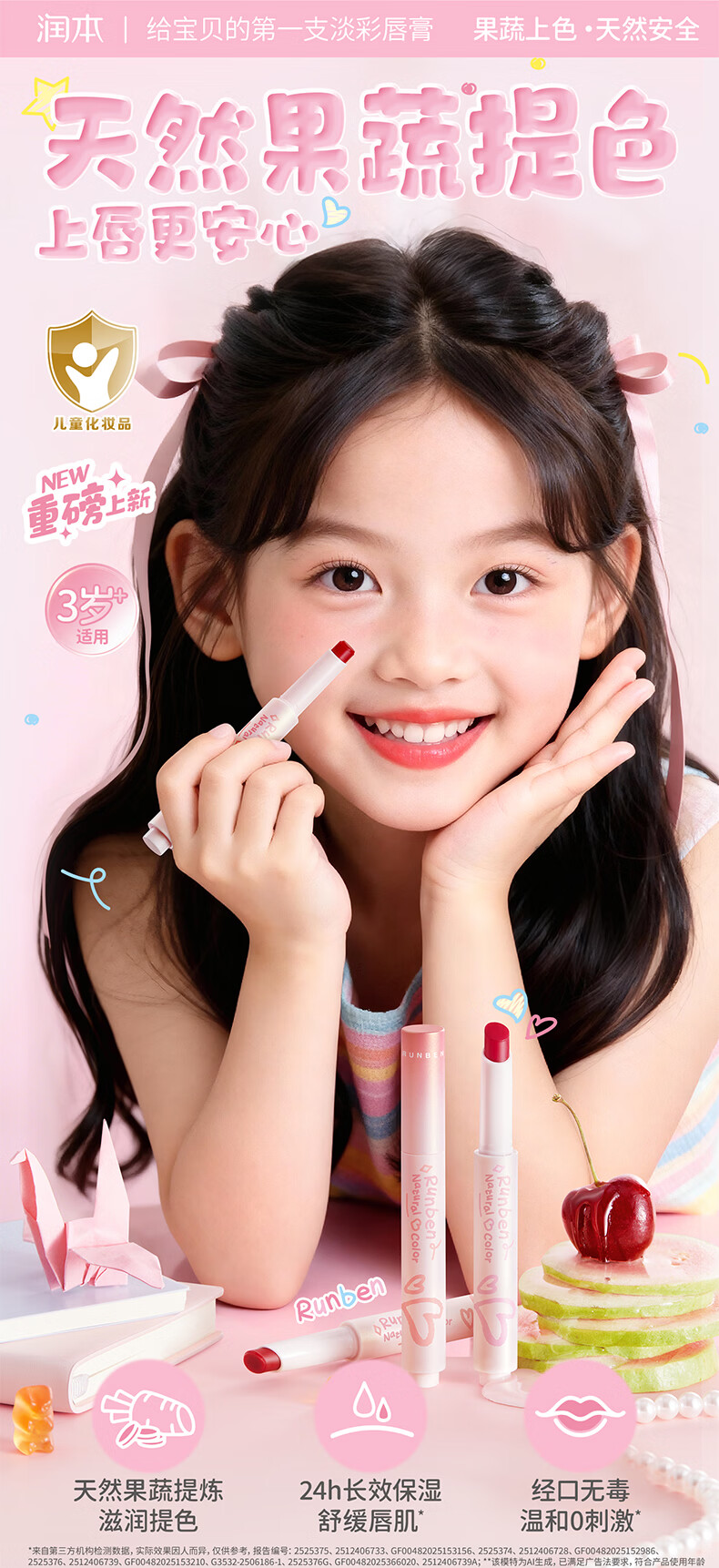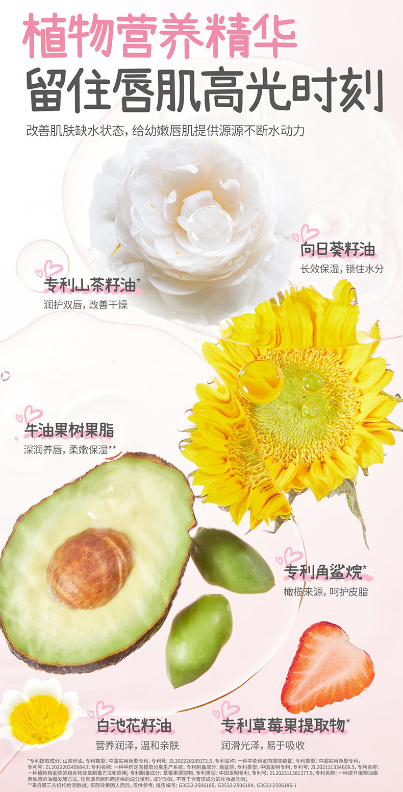 多重天然植物精粹;深润保湿,亲肤锁水;舒缓肌肤干燥刺激,果蔬提色,一抹红润