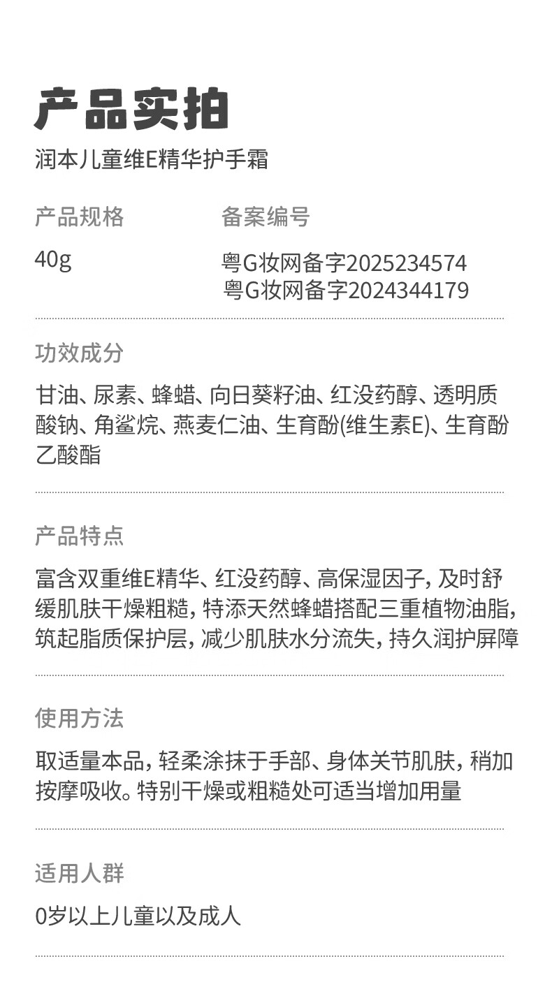 润本 儿童护手霜40g*2