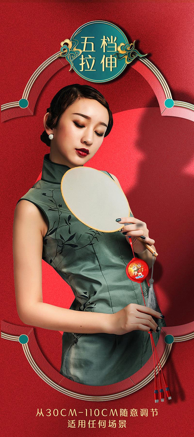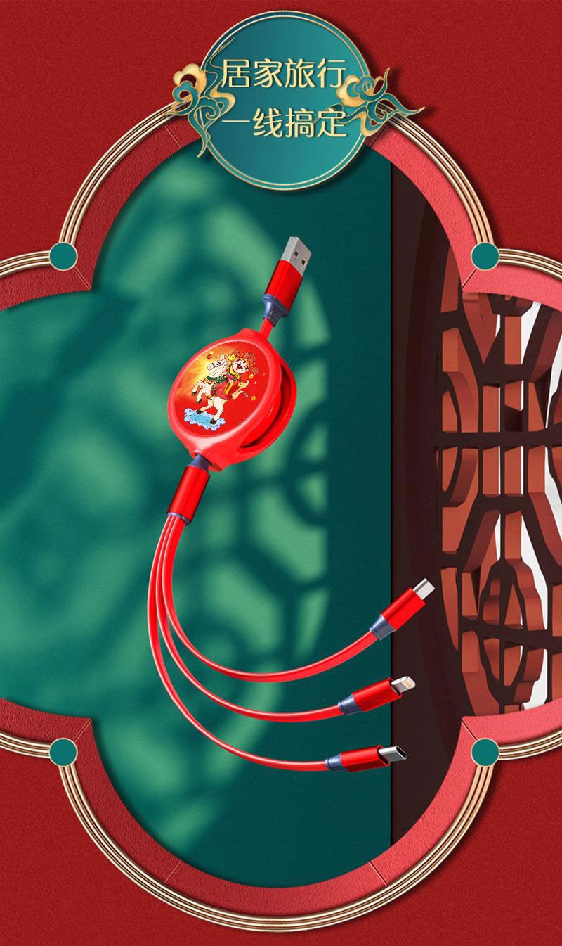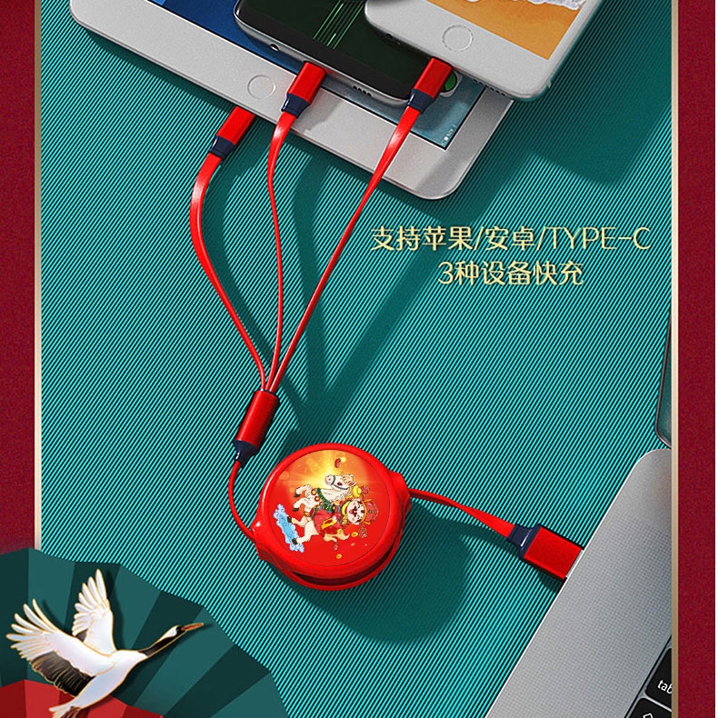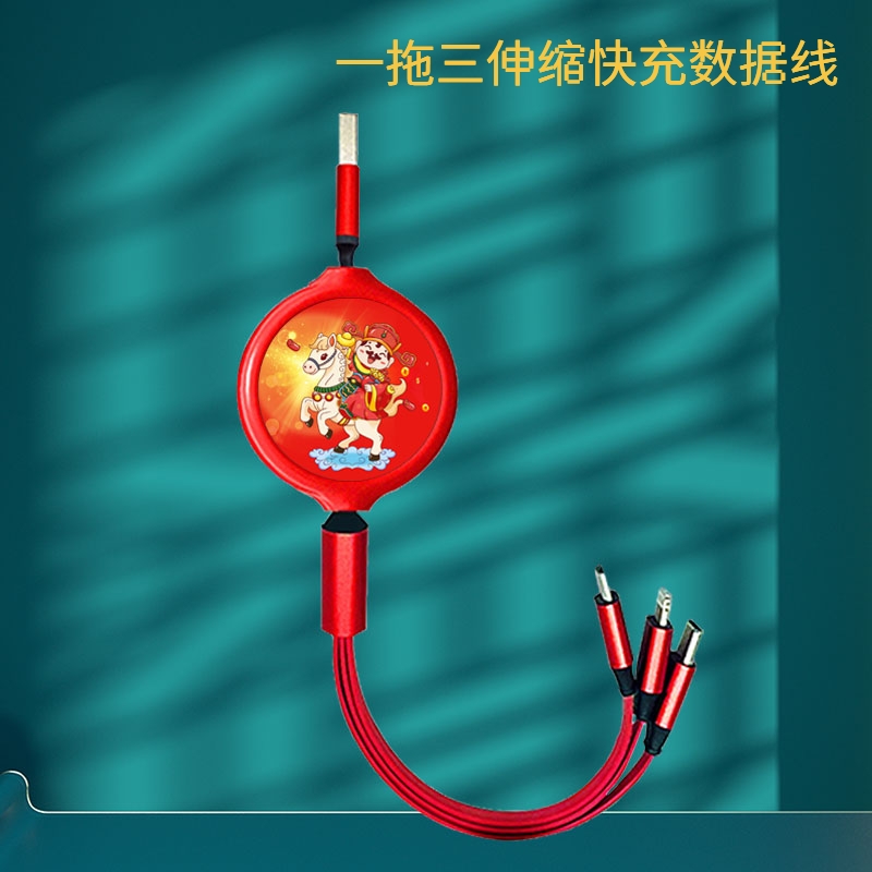 财滚滚 一拖三伸缩数据线插头快充套装