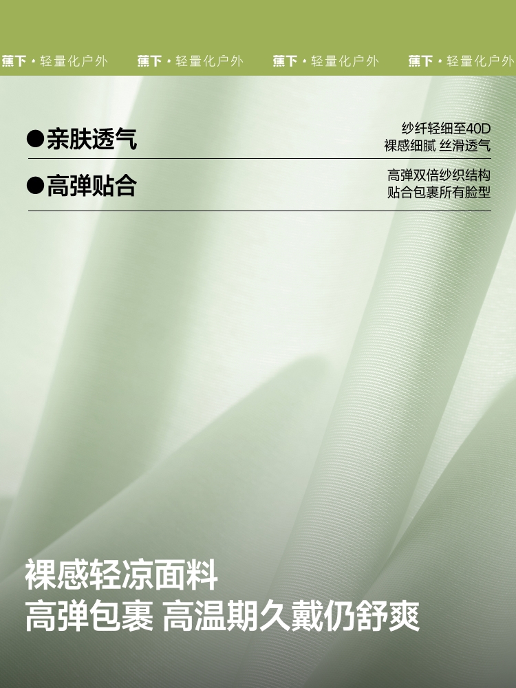 加高防护至眼角;裸感轻凉面料;百变多色 缤纷出行