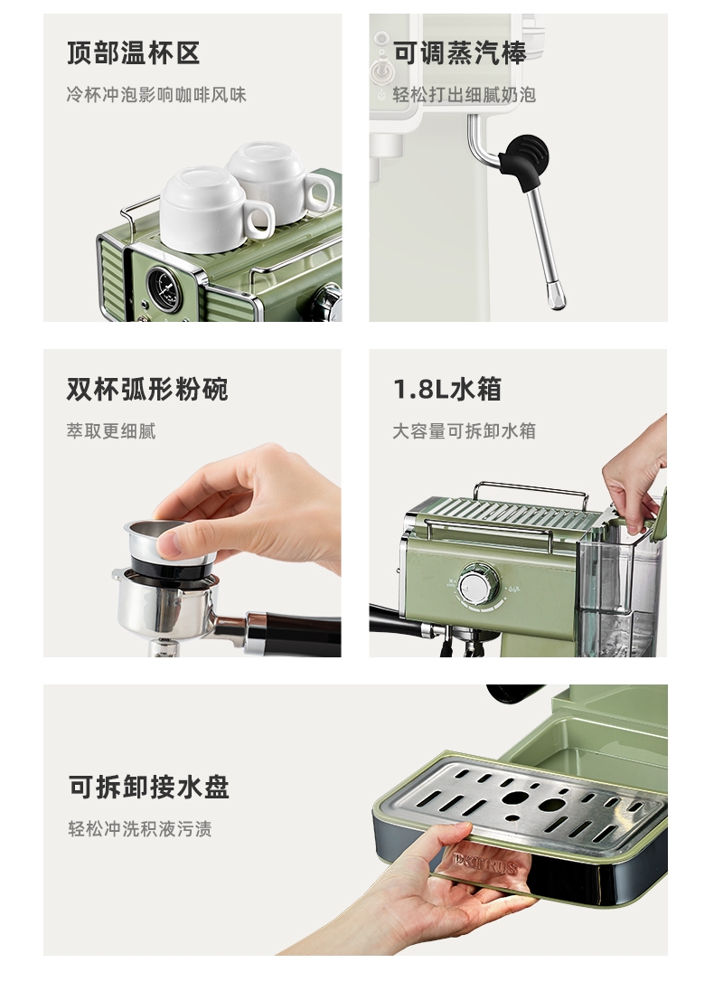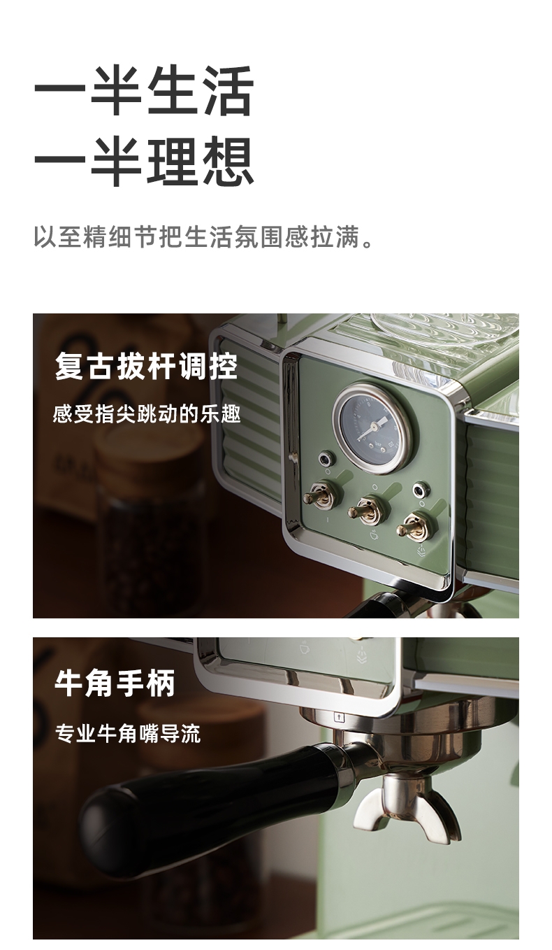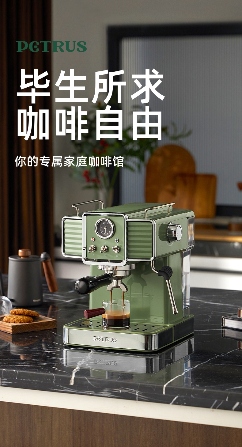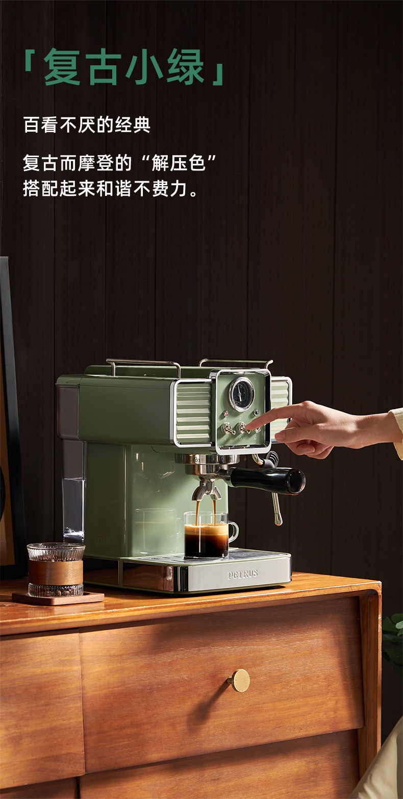 柏翠 复古绿意式浓缩专业家用咖啡机PE3690