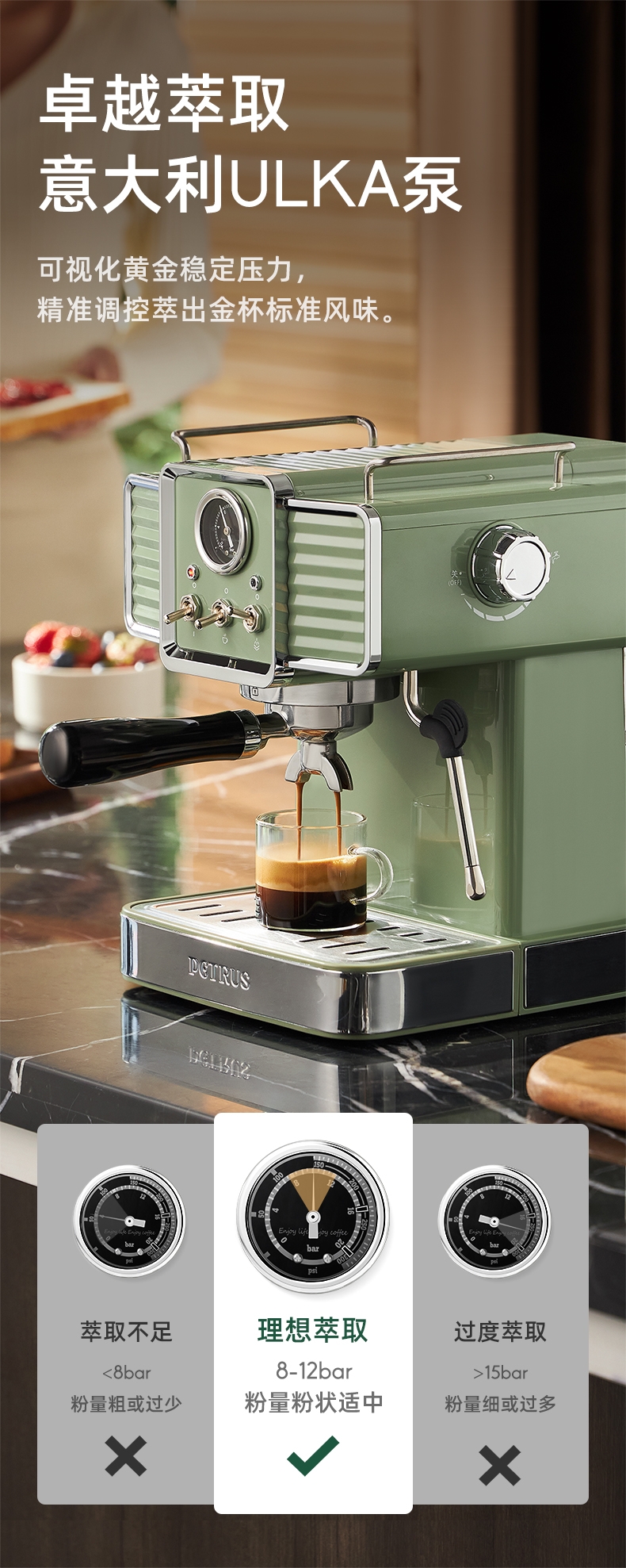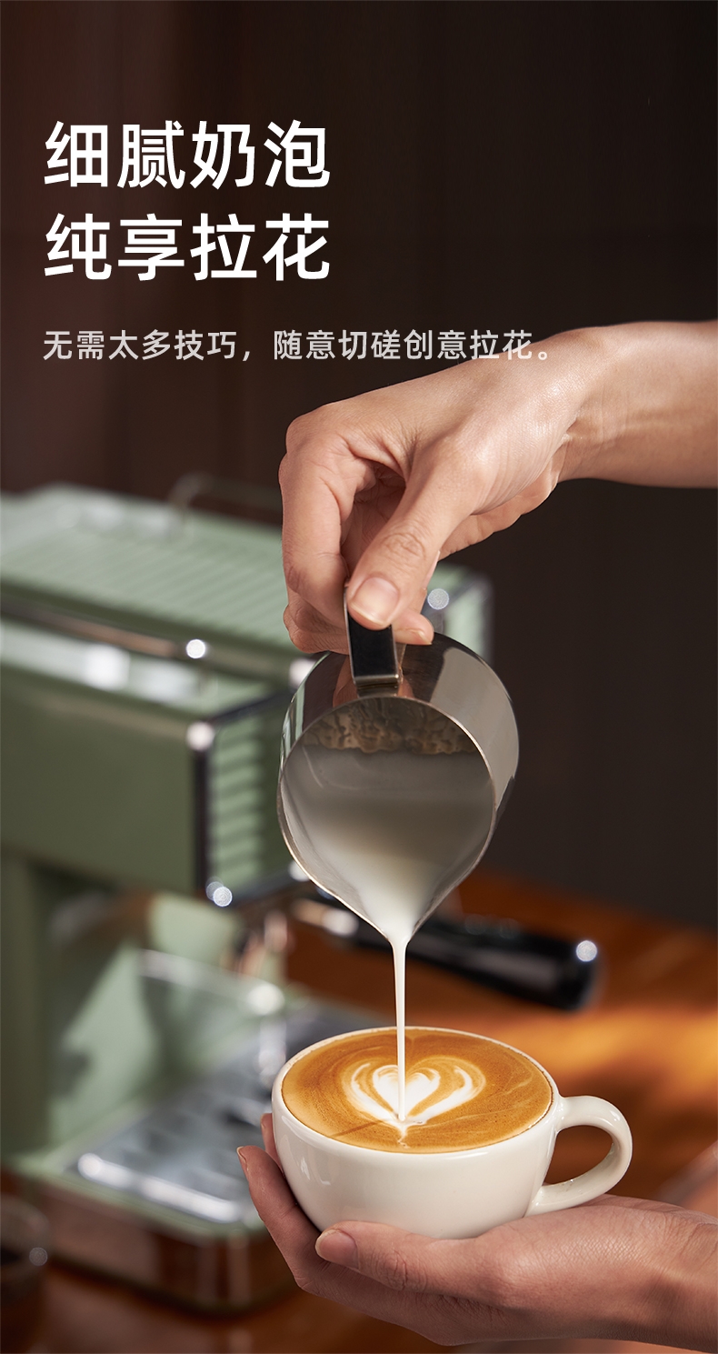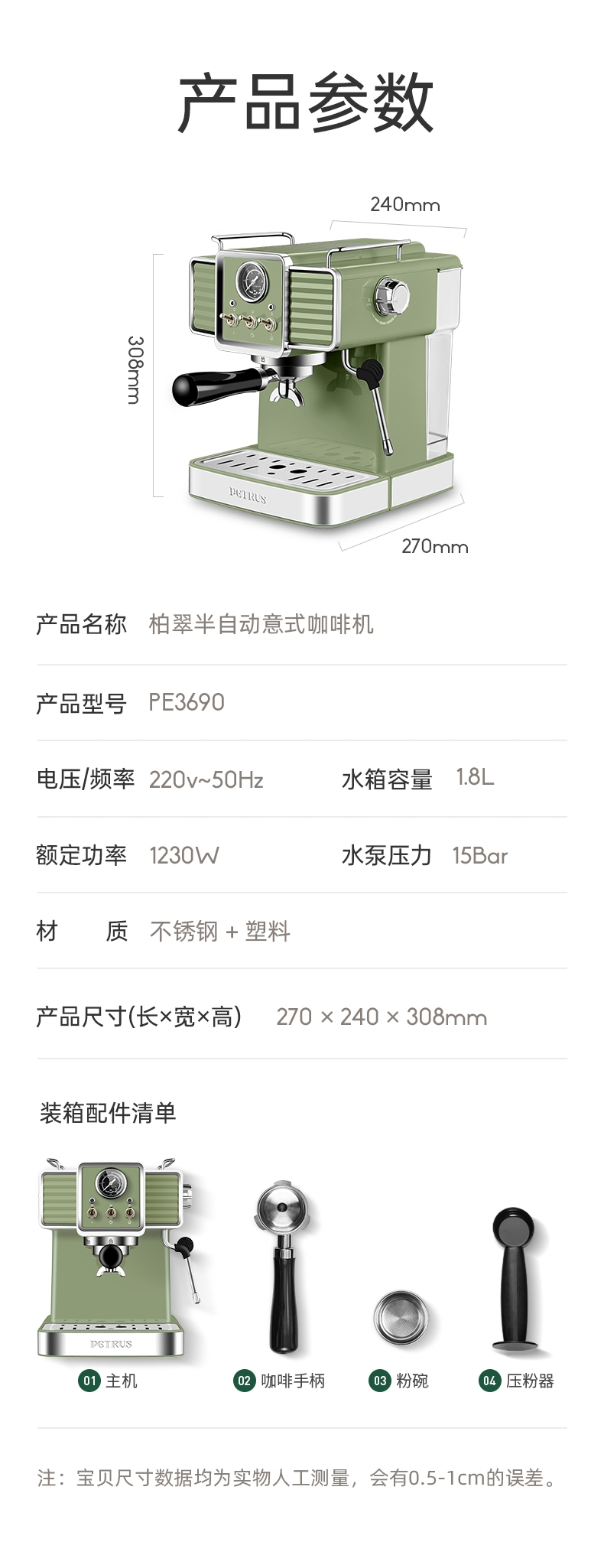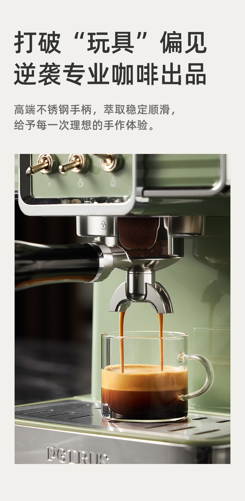 柏翠 复古绿意式浓缩专业家用咖啡机PE3690