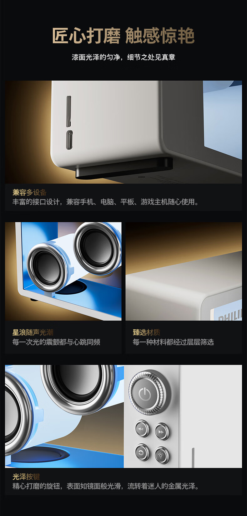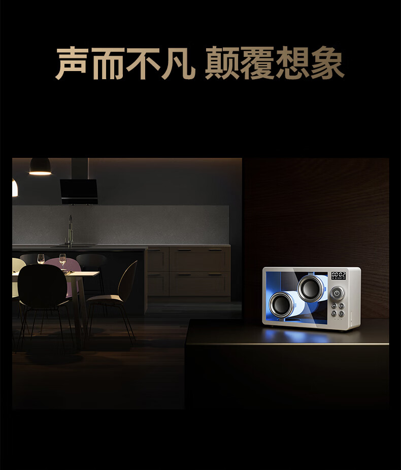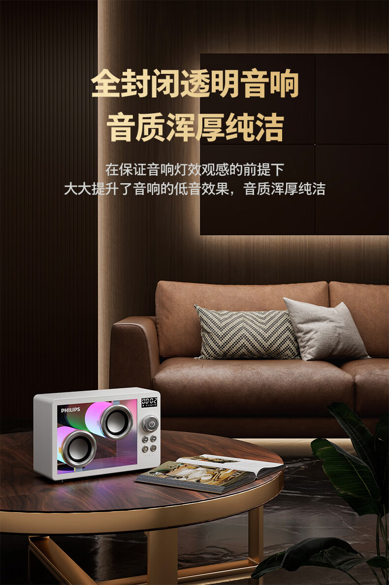 透明蓝牙音响美感与HIFI共存;全封闭透明啬响音质浑厚纯洁;氛围色彩灯营造氛围感多场景适用
