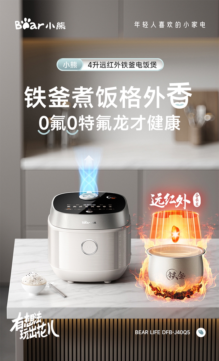 小熊 0氟铁釜微压健康低糖智能电饭煲DFB-J40Q5