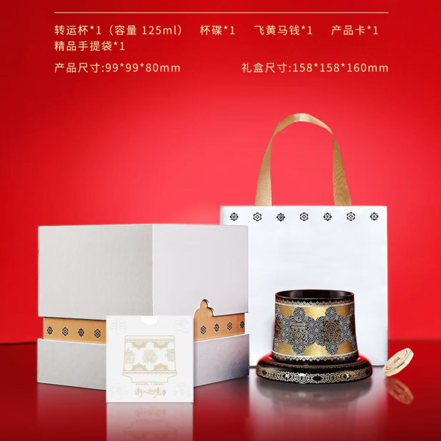 配置清单:转运杯1、杯碟1、飞黄马钱1、产品卡1、精品手提袋1