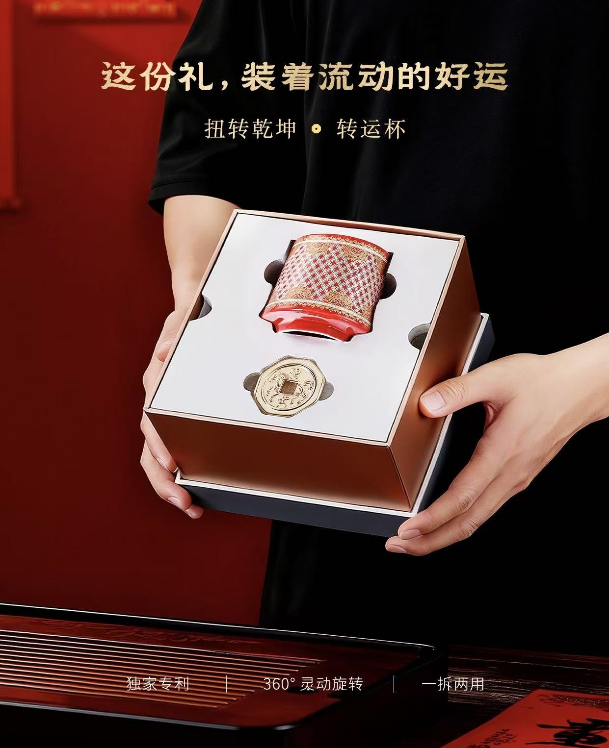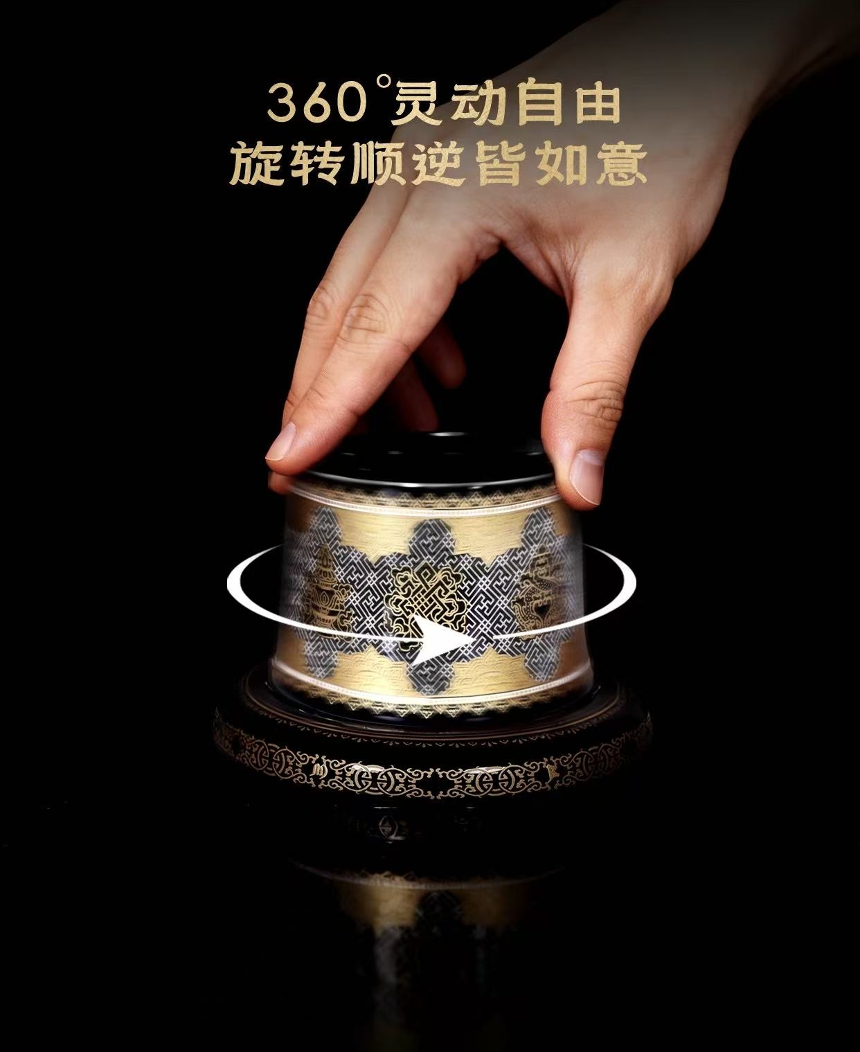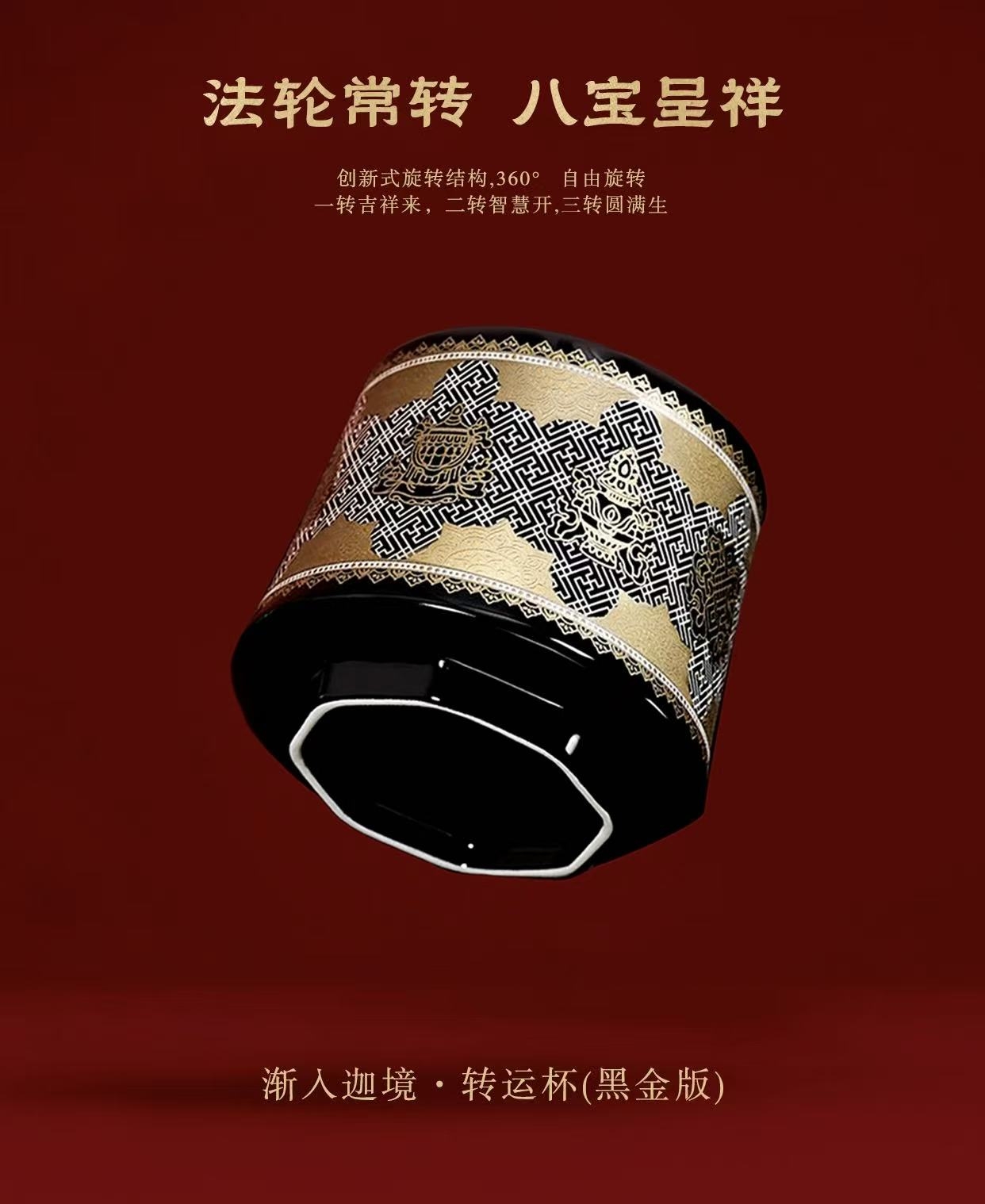 流转之间,好运随行;360度灵动自由,旋转顺逆皆如意;晚班福佑,凝于一杯