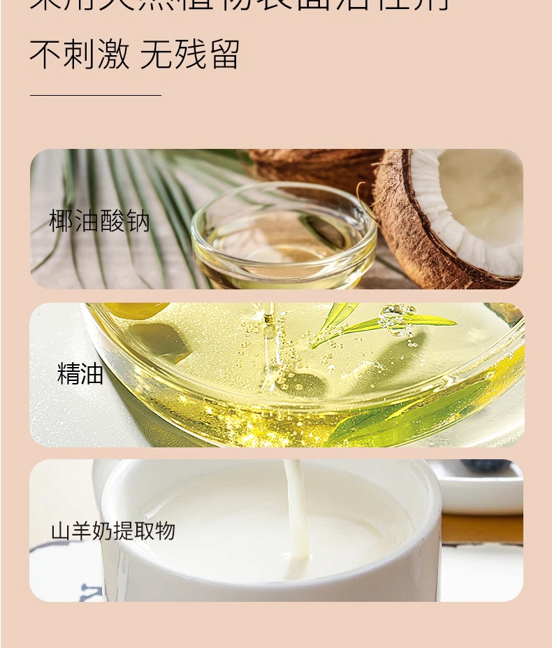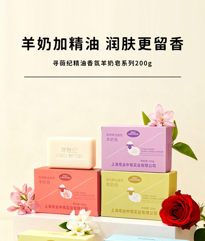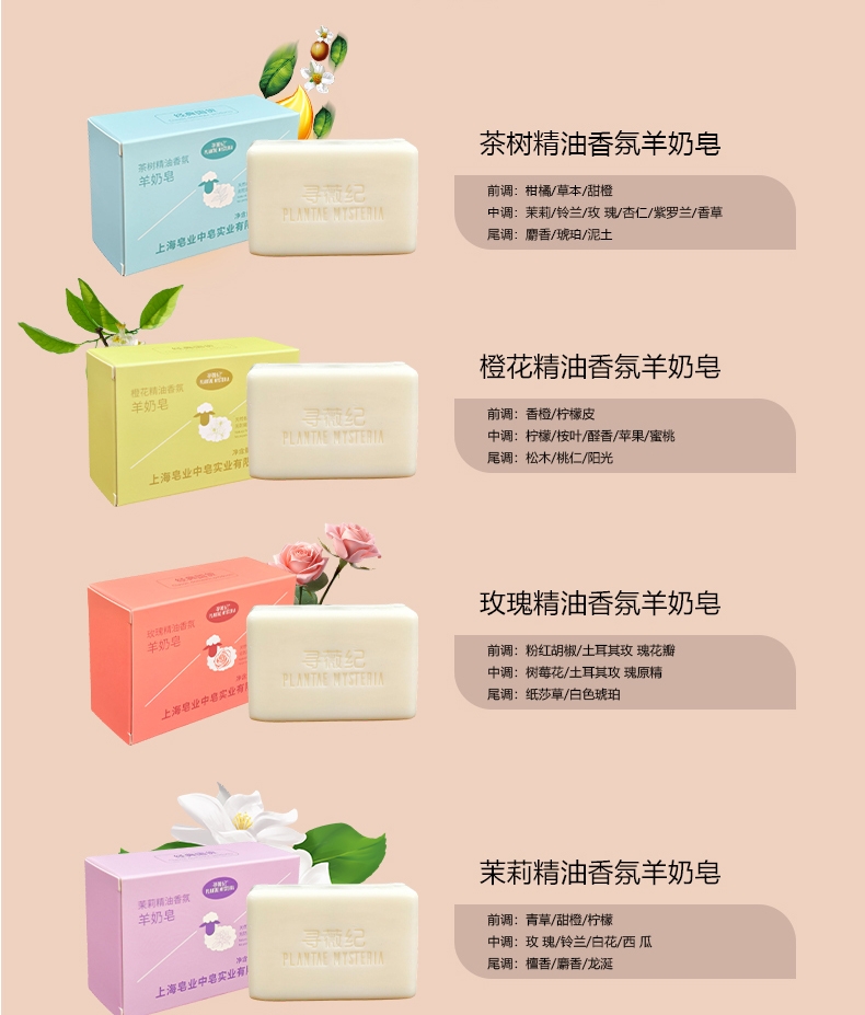 臻选天然植物油脂精制而成,自然温和,洁净肌肤;.茉莉精油营养丰富,唤醒沉睡的肌肤,让你保持年轻;添加新鲜羊奶,滋润肌肤,补充营养