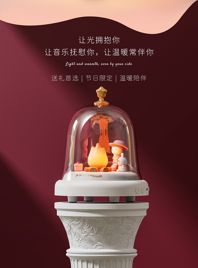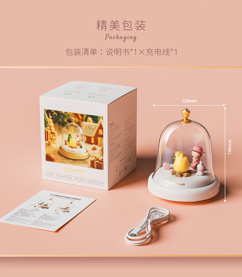 八音盒、蓝牙音箱,两个版本;可定制logo;可定制内部公仔人物
