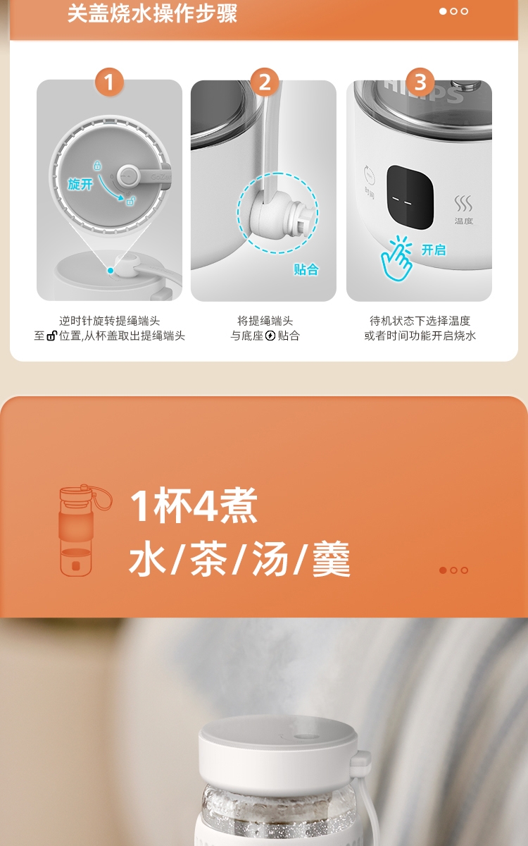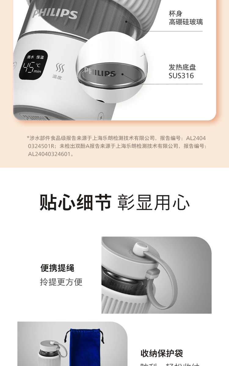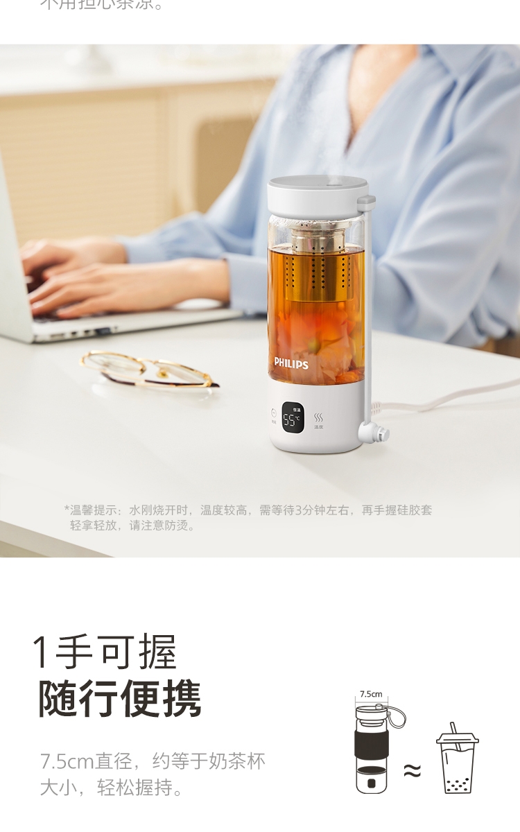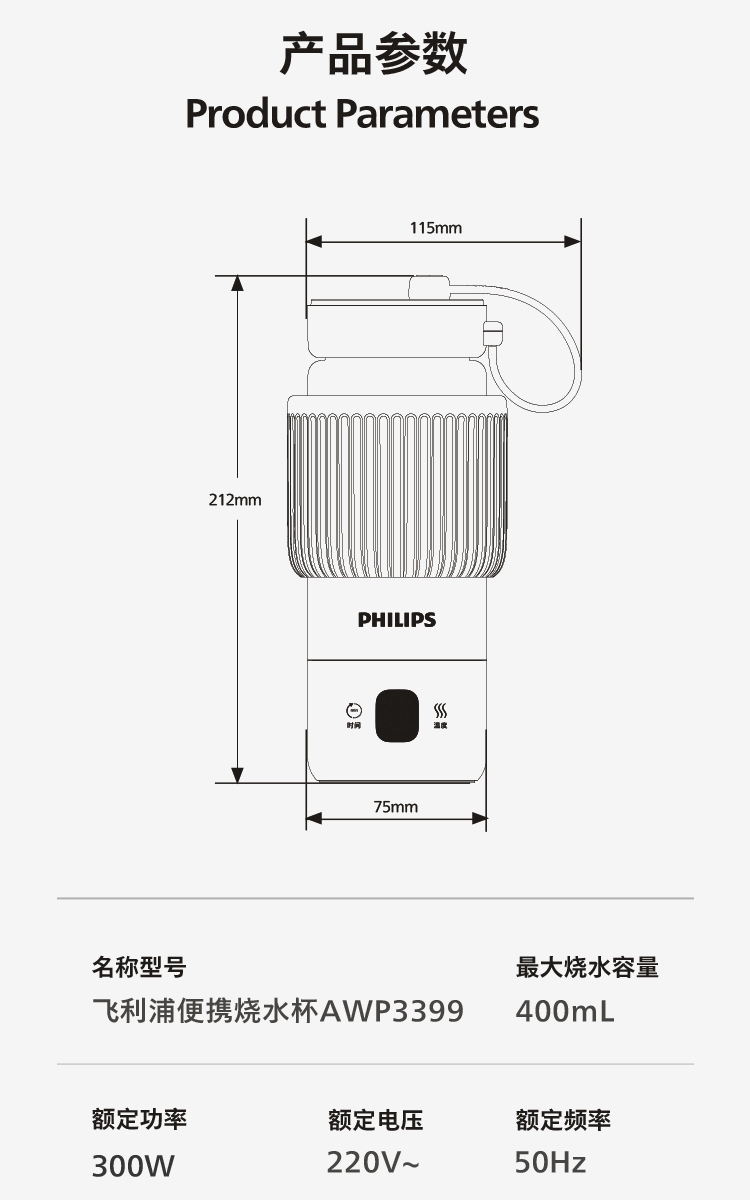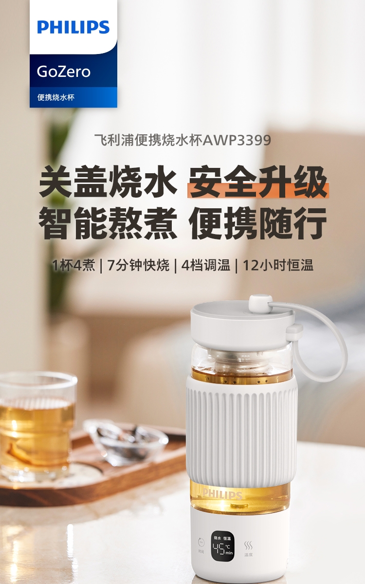 飞利浦 烧水杯旅行便携小型烧水壶AWP3399