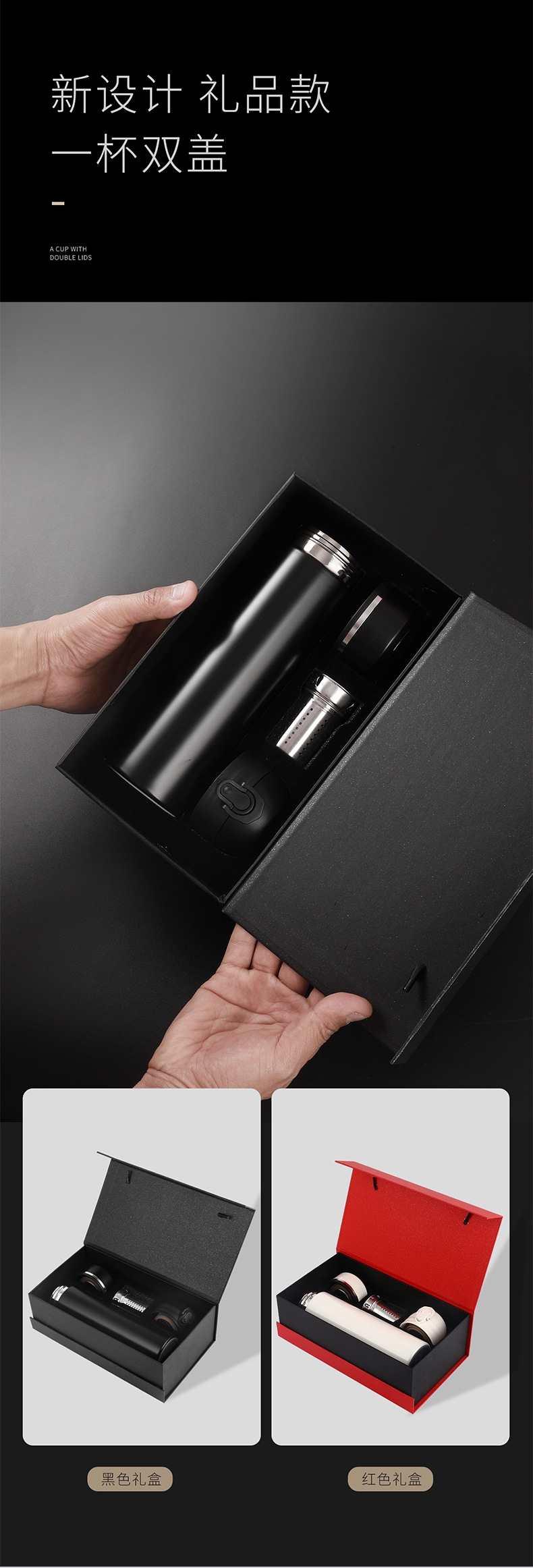 骏天 316不锈钢一杯双盖礼盒装DG-0009