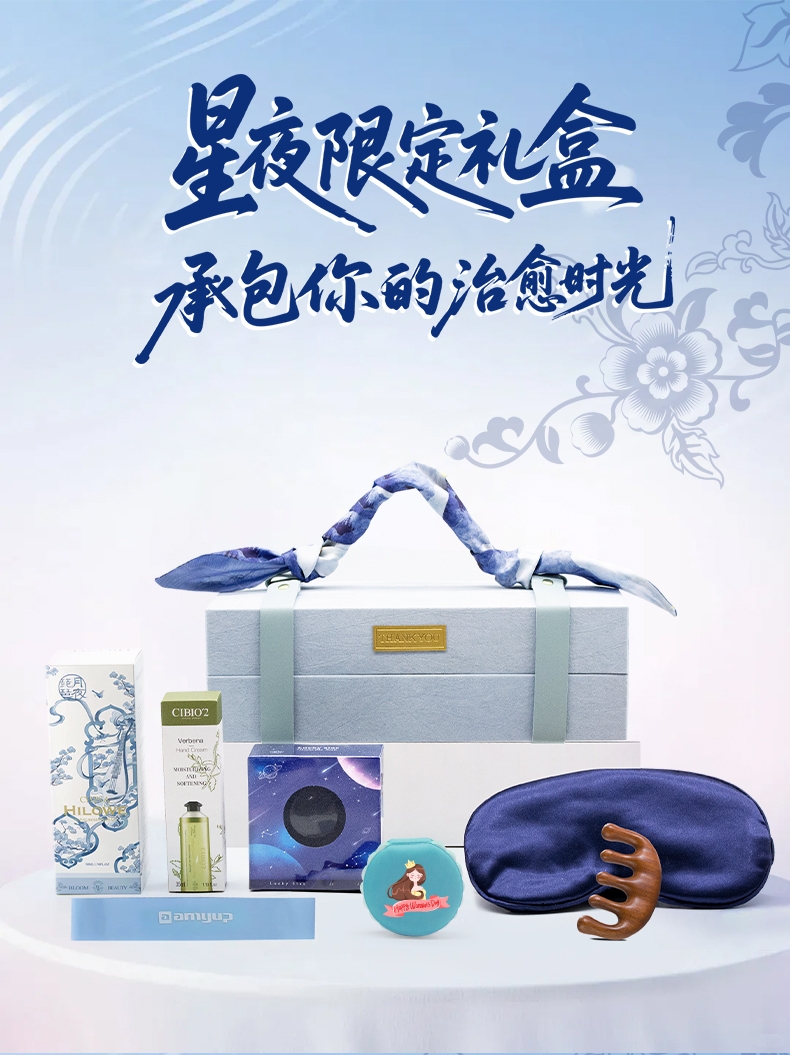 雾蓝治愈礼盒,香薰 + 眼罩,承包你的松弛时光;按摩梳 + 护手霜,实用好物,贴心又解压;星野限定设计,颜值与治愈感并存