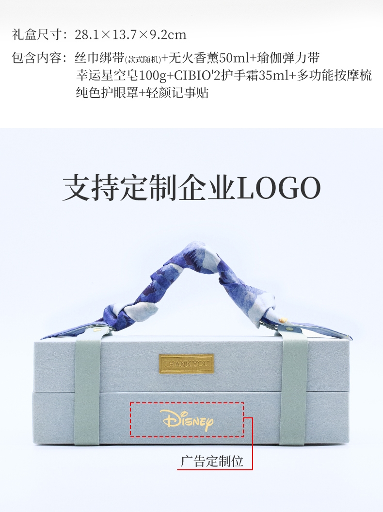 配置清单:藤枝无香薰50ml+幸运星空皂100g+多功能按摩梳+轻颜记事贴+CIBIO2护手霜35ml+纯色眼罩+瑜伽弹力带+丝巾绑带(颜色随机)