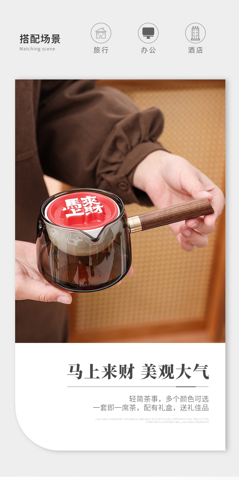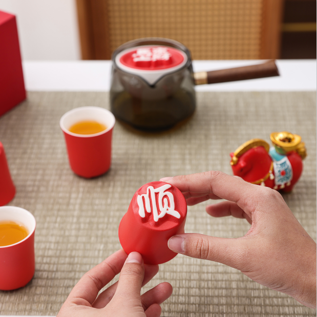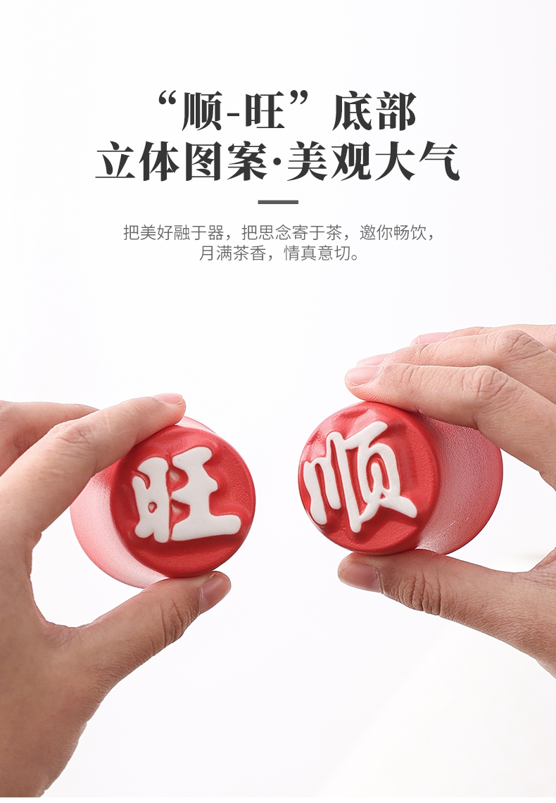 360°旋转,单手泡茶不掉落;马上来财,寓意美好;“顺、旺”底部,立体图案,美观大气