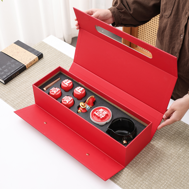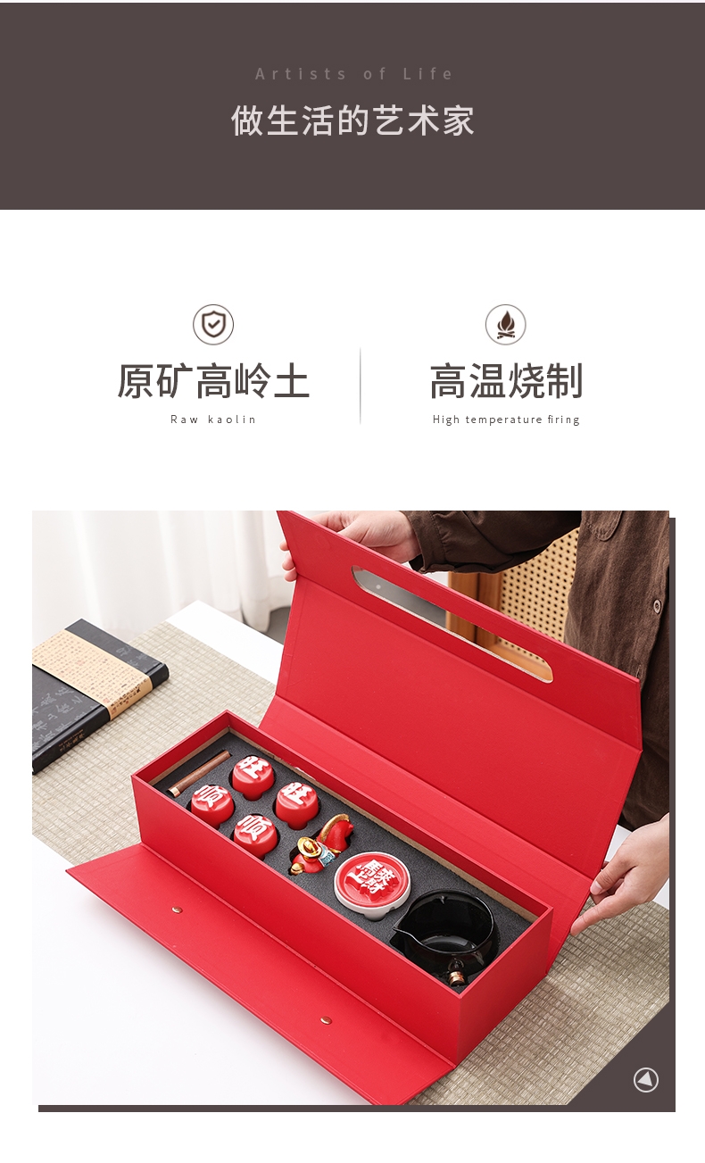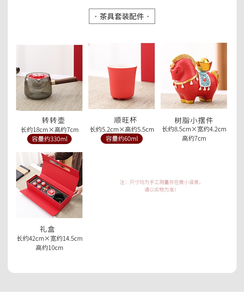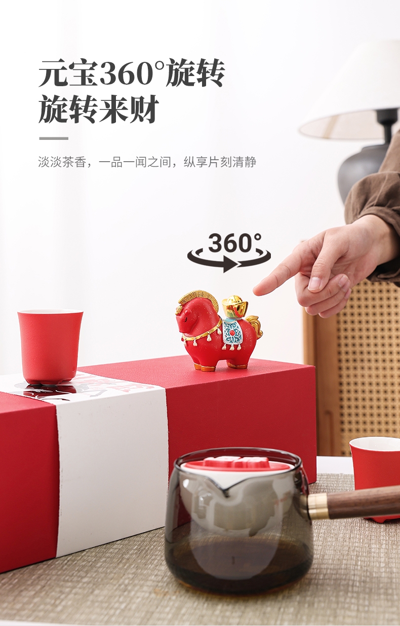 配置清单:转转壶1、马上有财摆件1、品茗杯4、礼盒1
