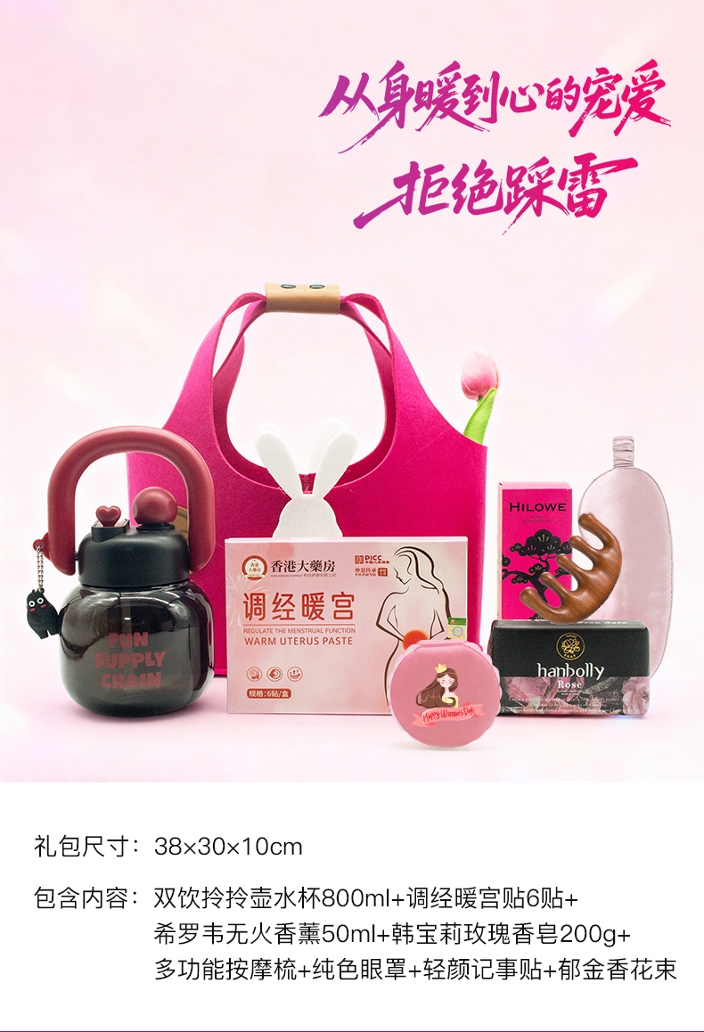 桃粉萌兔毛毡包,颜值在线,实用又吸睛;暖宫贴 + 香薰,把关心藏进细节里;女神节限定,送礼贴心又有面