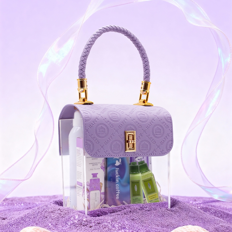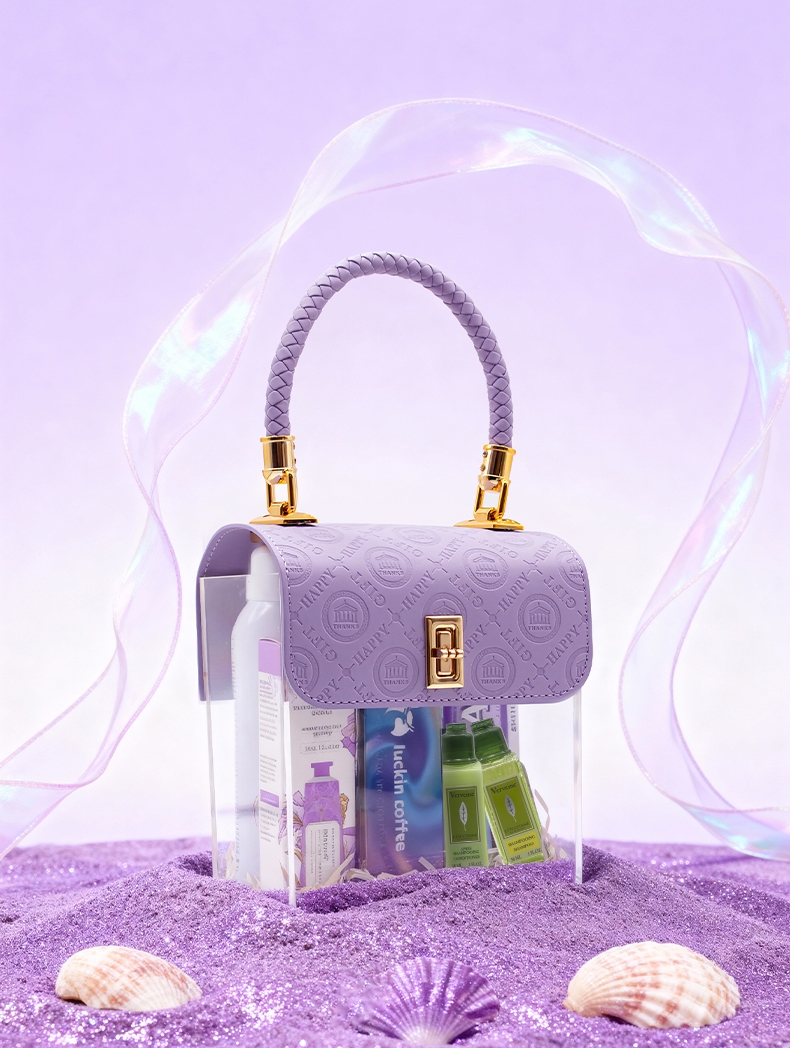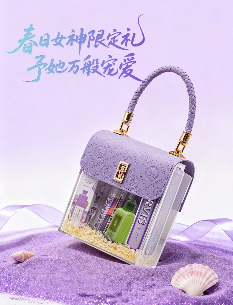 幻紫晶盒,亚克力编织包,颜值质感双在线;欧舒丹洗护 + 便携夹板,实用好物配齐;精致手提设计,送礼自用都吸睛