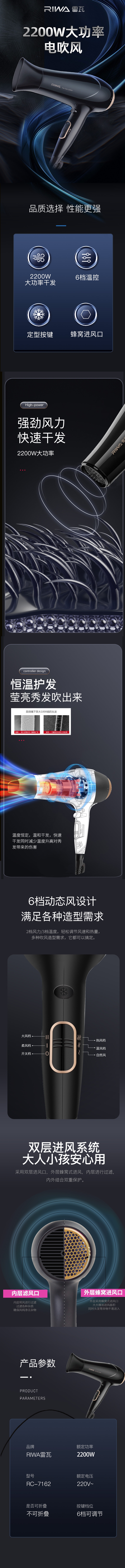 雷瓦 大功率电吹风RC-7162
