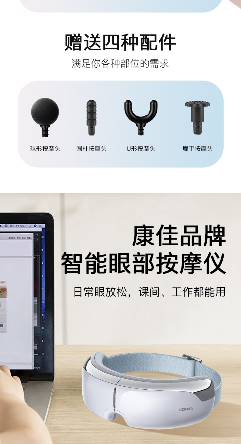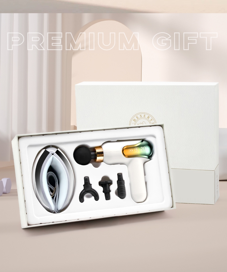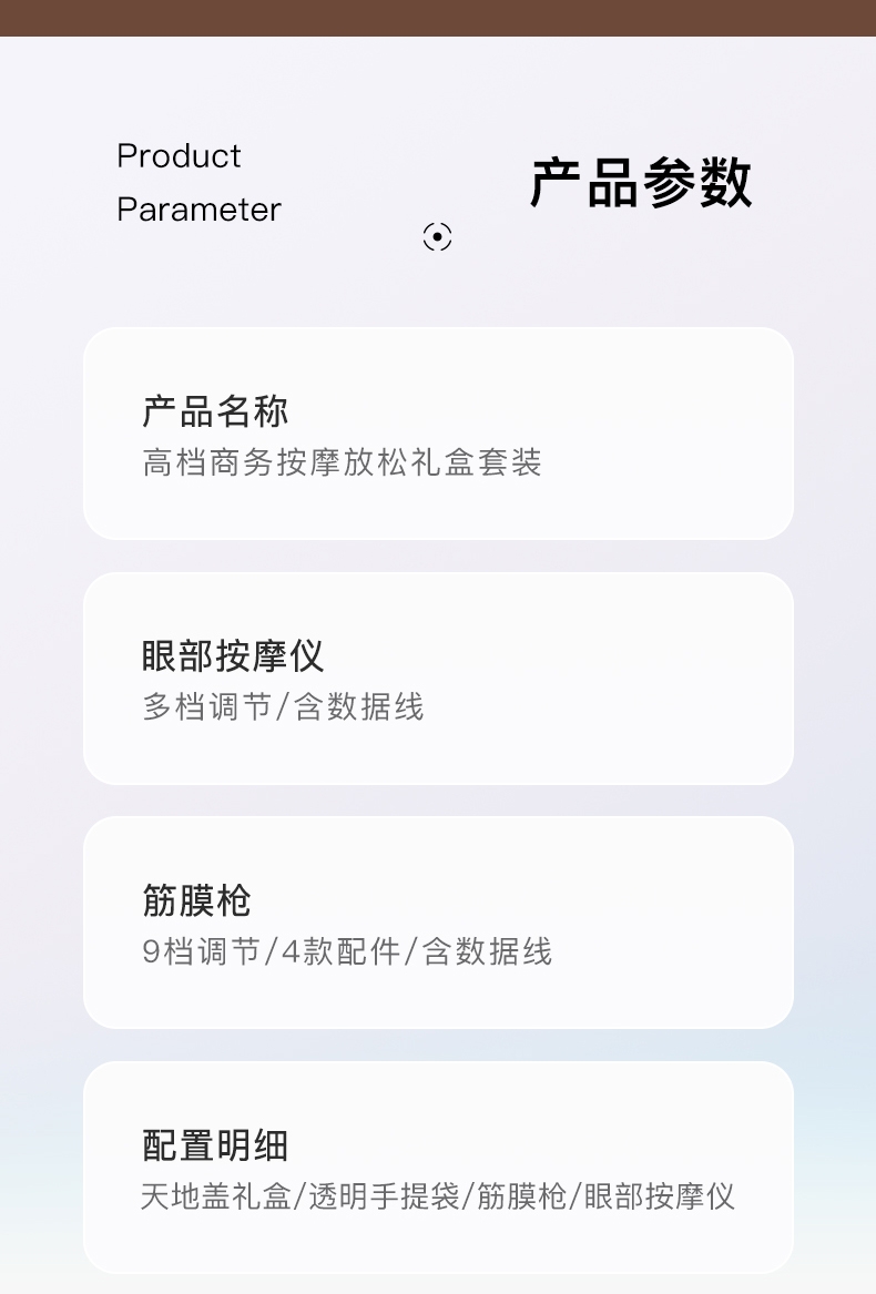 筋膜枪 + 眼部按摩仪,双重舒压,焕能必备;轻奢礼盒设计,送礼自用尽显贴心;智能按摩组合,随时随地放松身心