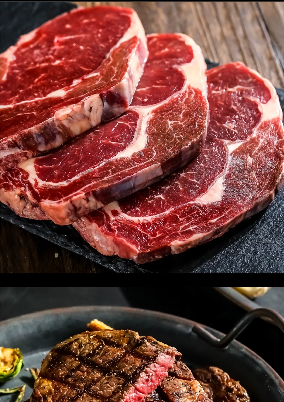 配置清单:1.原切大战斧牛排600g*2袋 2.小战斧牛排250g*2袋 3.原切西冷牛排180g*1袋