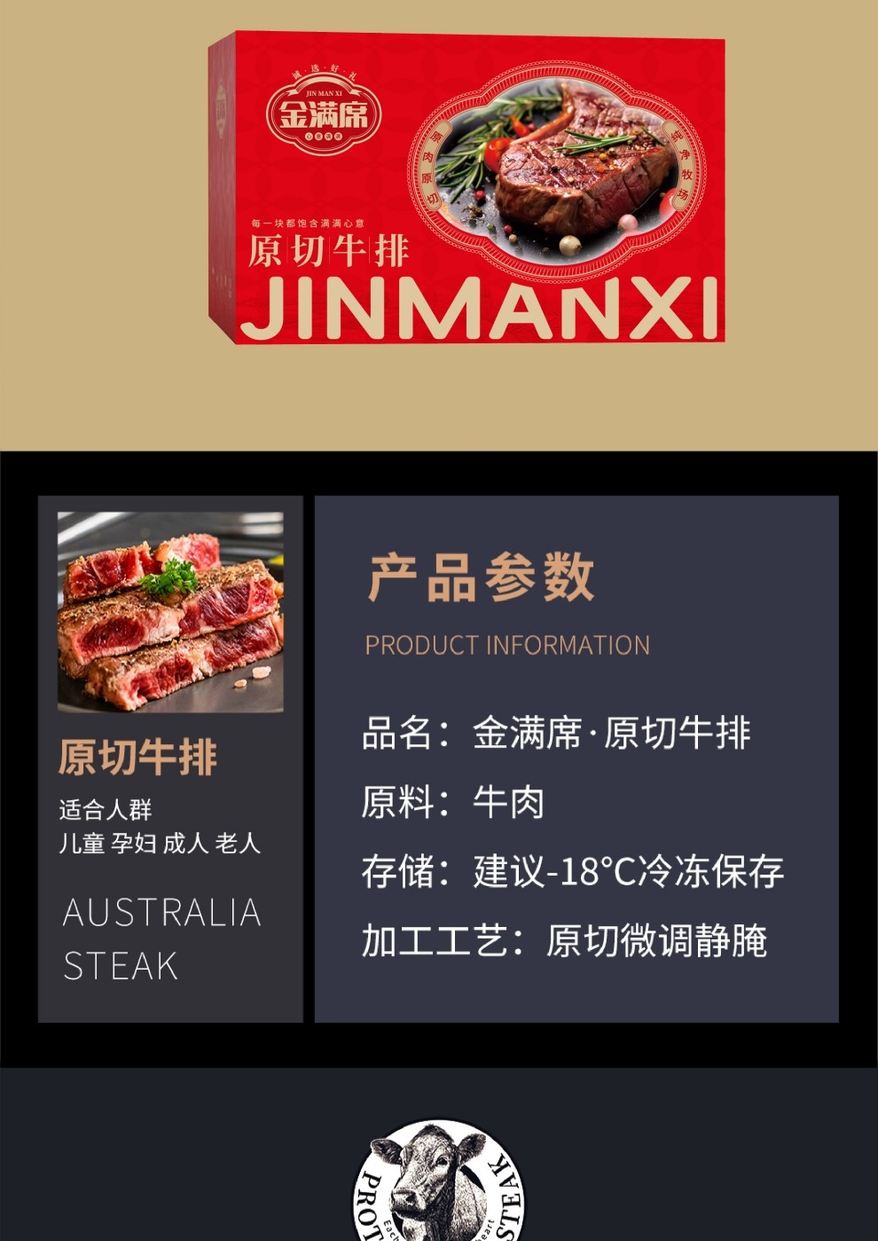 金满席 原切牛排2288型实物