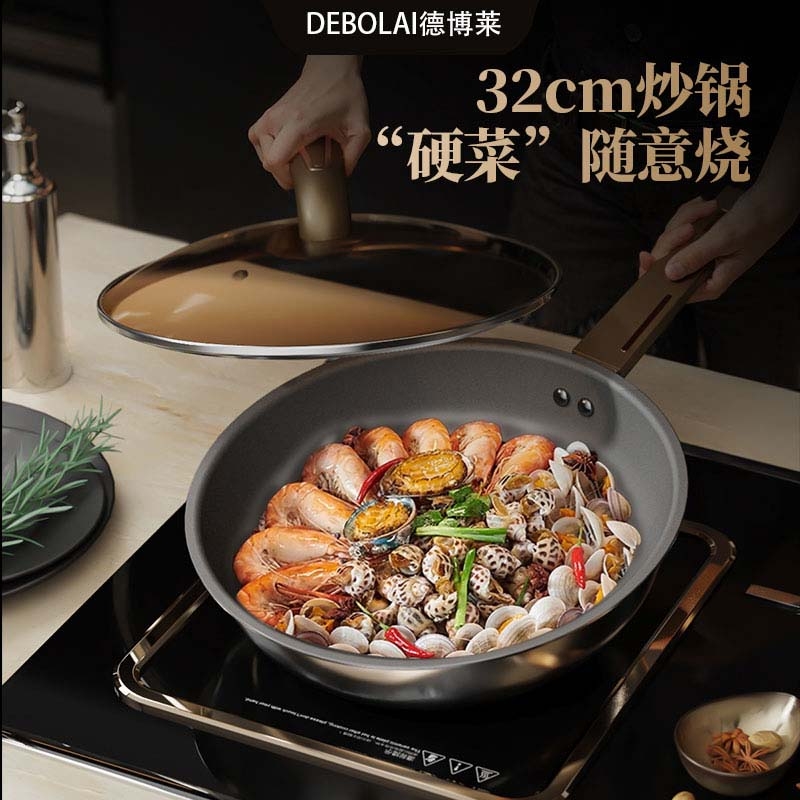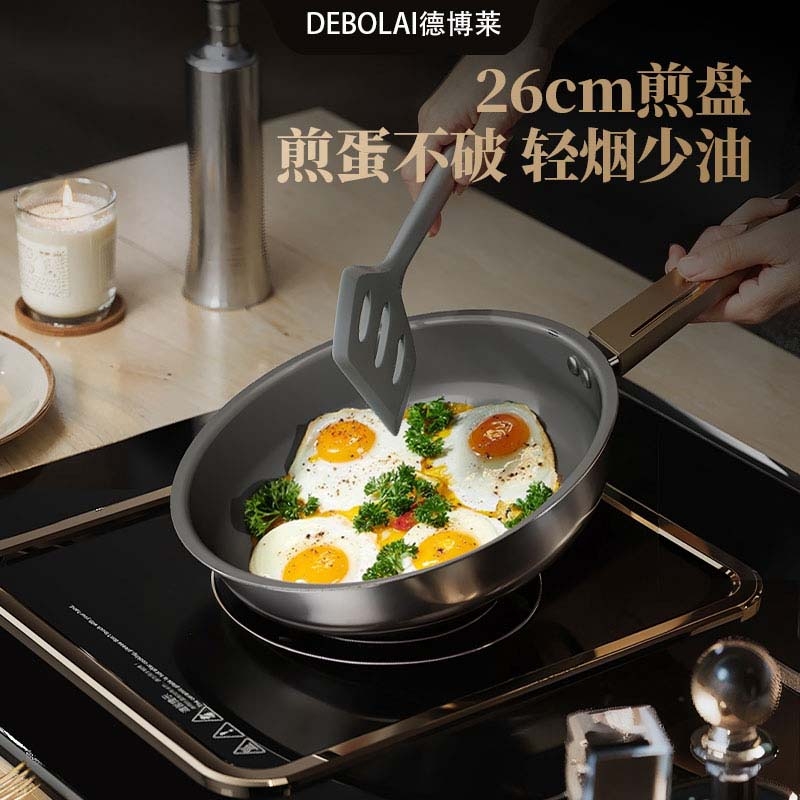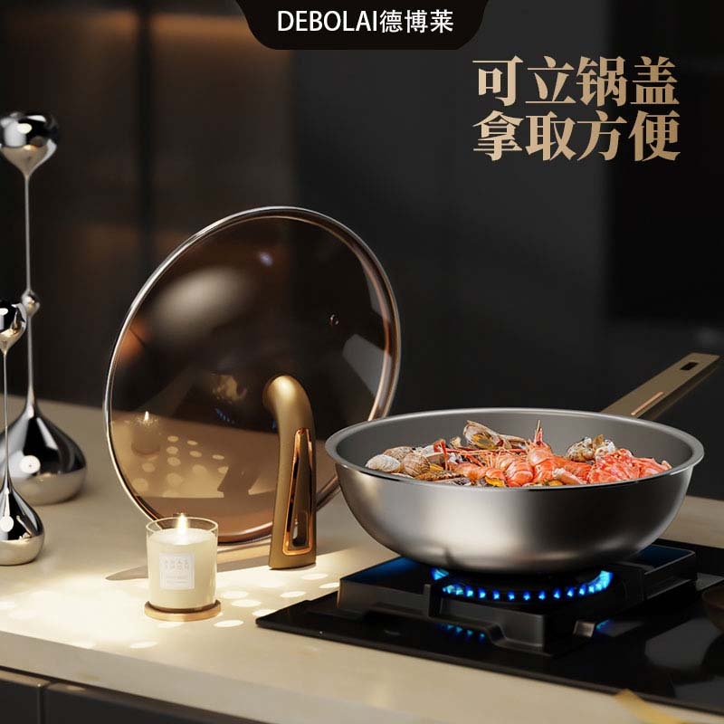 食品级304不锈钢复合锅身+先进覆钛工艺,锅身抛光;锅体达到一级不沾国标水平,煎炒炖煮随心所欲;钛具有抑菌保鲜的作用,使用健康更安心