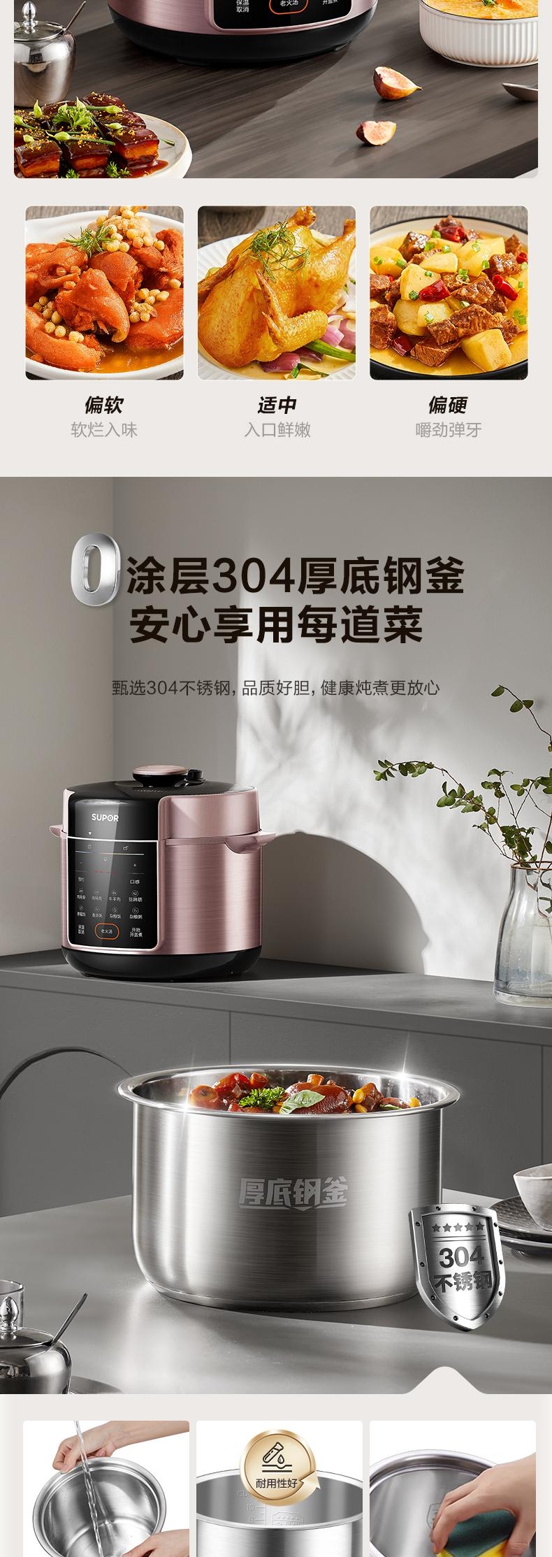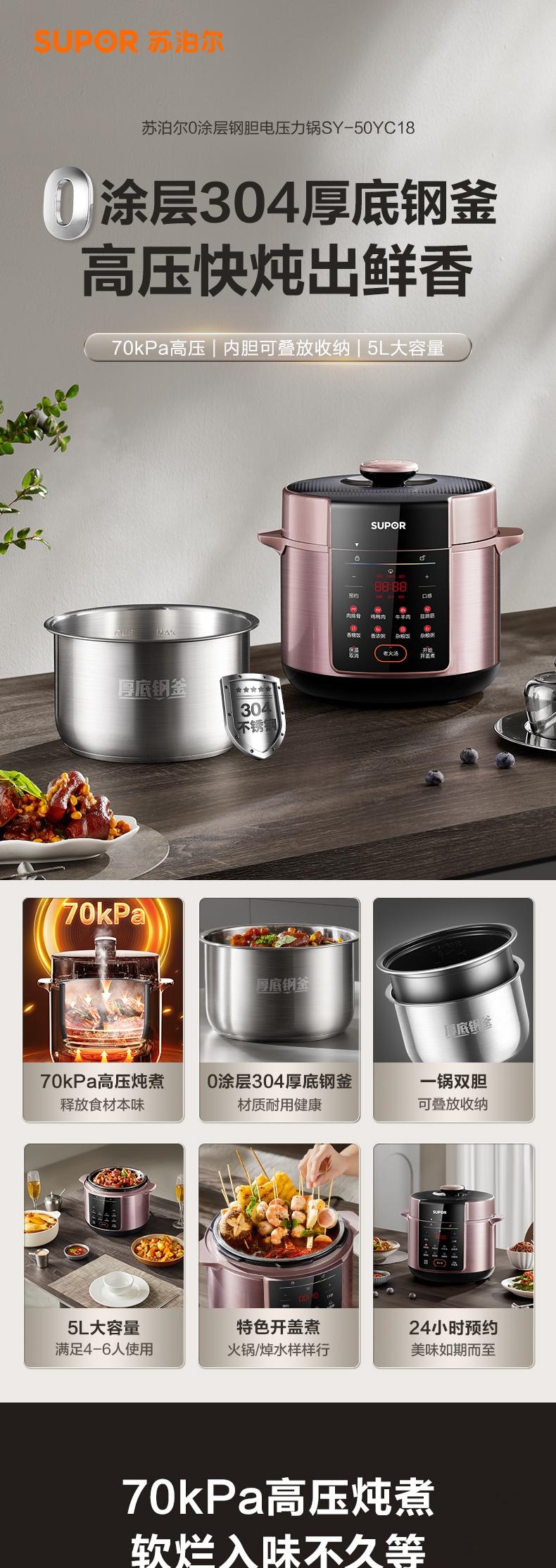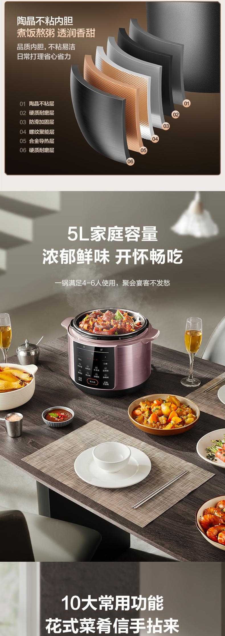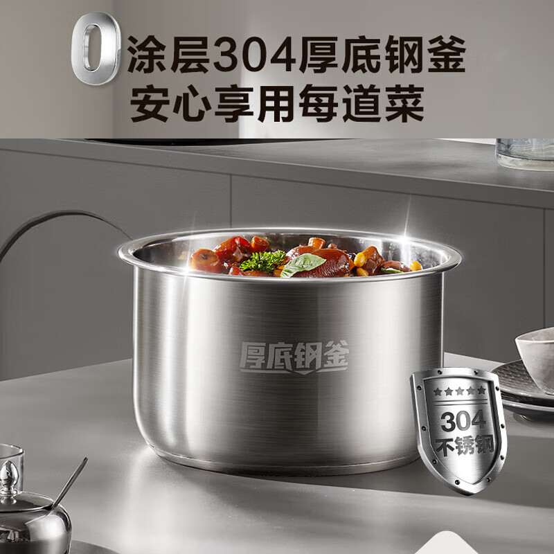 5L大容量,容纳多人大胃口;304不锈钢钢胆,更健康;11大功能菜单,大屏便捷操作